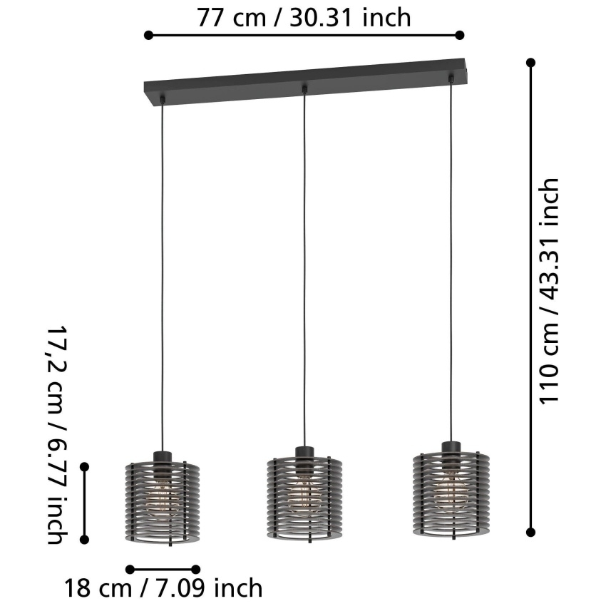 EGLO SVÍTIDLO 900738 SEGOVIA 3XE27 ZÁVĚSNÉ ČERNÁ