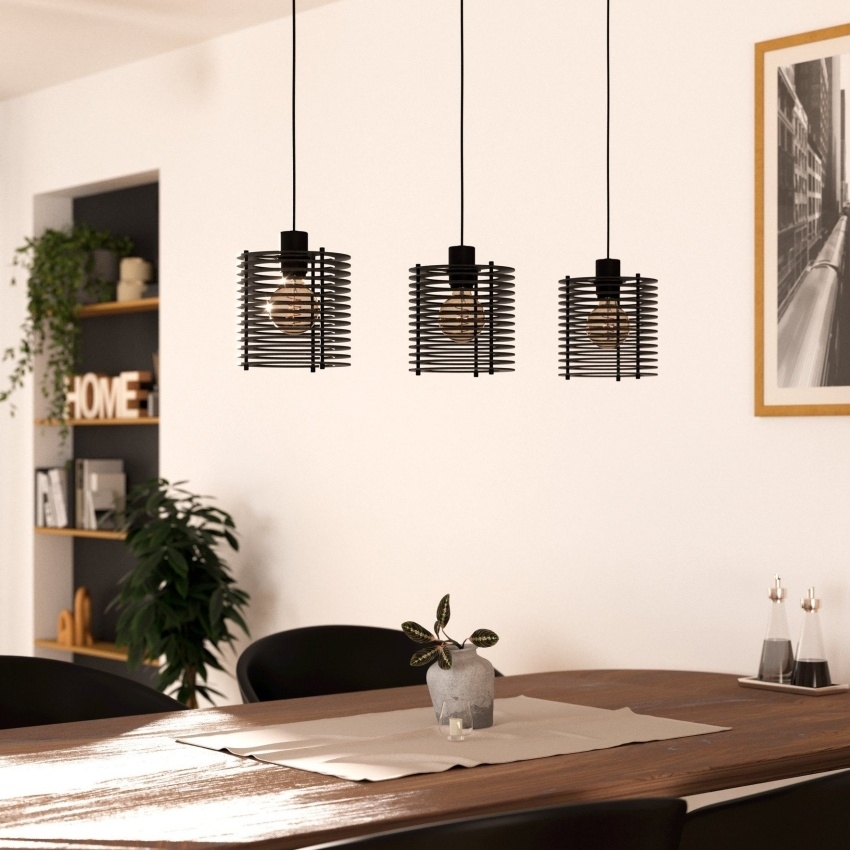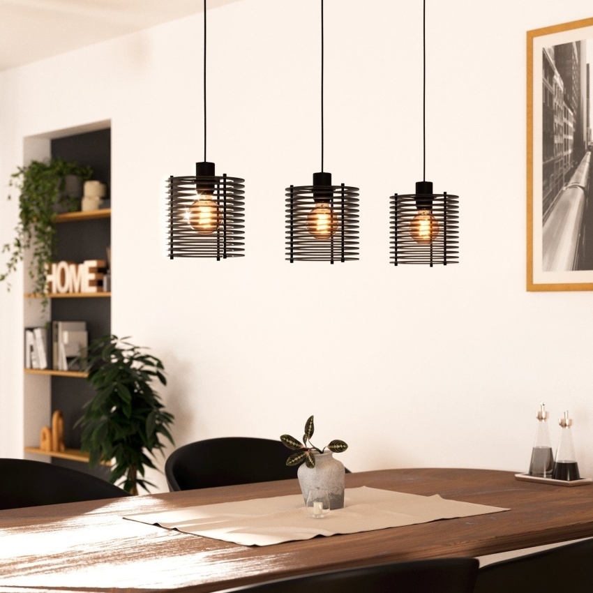 Závěsné svítidlo EGLO SEGOVIA zaujme moderním a elegantním designem, který se hodí do různých interiérů. Svítidlo je tvořeno černým kovovým závěsem a třemi stínidly z černých dřevěných lamel. Tyto lamely vytvářejí po rozsvícení jedinečné světelné efekty a fascinující hru světla a stínu. Díky uspořádání lamel v kruzích je eliminován přímý odlesk světla směrem dolů, což zajišťuje příjemné osvětlení. Ideální je nad jídelní stůl či jako dominantní prvek v obývacím pokoji. Žárovky nejsou součástí balení, což umožňuje volbu světelného zdroje dle vašich potřeb.