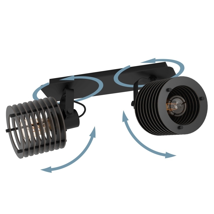 Stropní svítidlo EGLO SEGOVIA vyniká moderním designem a praktickým využitím. Skládá se z černého kovového těla a dvou pohyblivých bodů, které lze nasměrovat podle potřeby. Hlavy svítidla jsou tvořeny černými dřevěnými lamelami, které po rozsvícení vytvářejí zajímavou hru světla a stínu. Toto otočné bodové svítidlo je ideální pro osvětlení kuchyně, obývacího pokoje, ložnice, chodby či jídelny. Žárovky nejsou součástí balení, takže si můžete vybrat typ světelného zdroje podle svých preferencí.