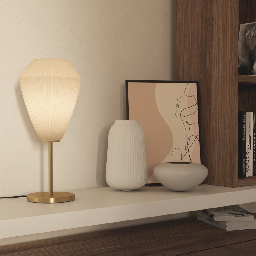 - Stínidlo v pískové barvě pro jemné a příjemné světlo