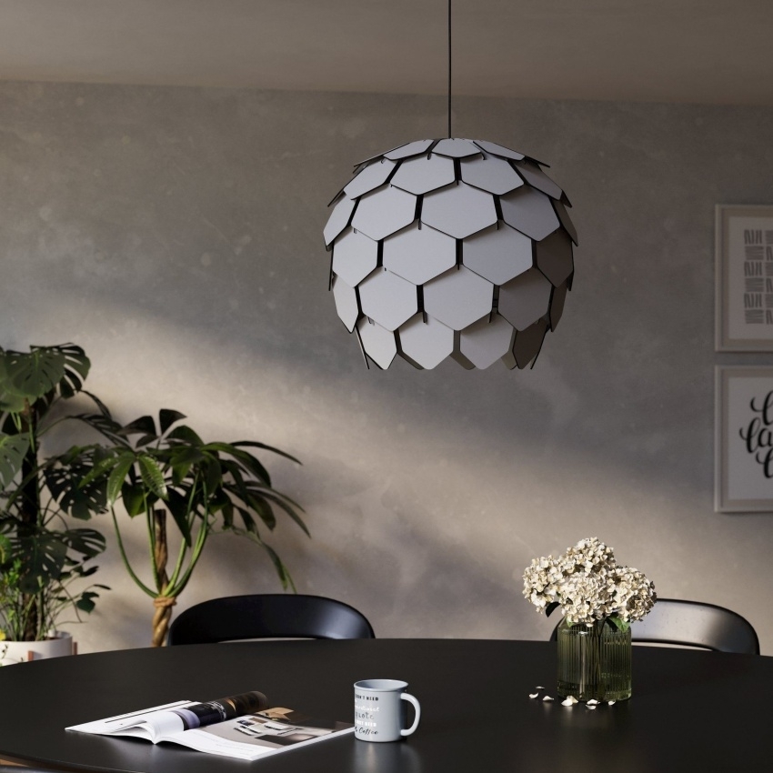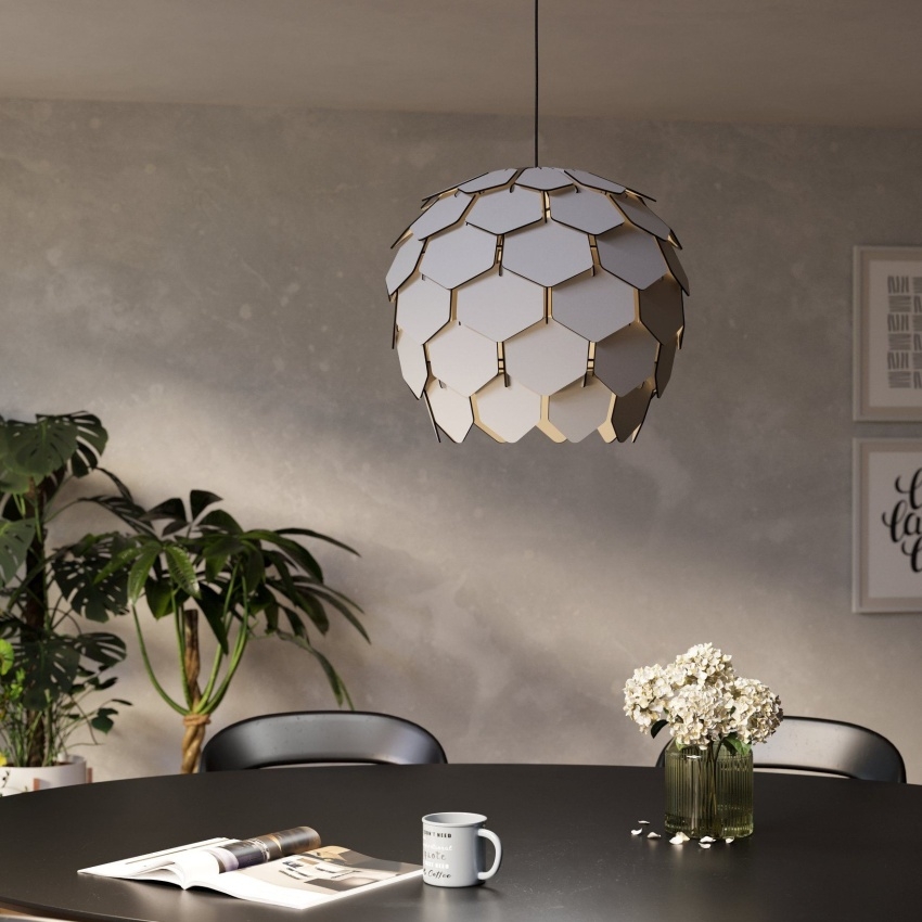 Závěsné svítidlo EGLO MATTANZA je ideální volbou pro moderní interiéry, kde chcete propojit eleganci a přírodní prvky. Stínidlo tvoří množství světle šedých dřevěných lamel uspořádaných do kruhu, které vytvářejí zajímavý světelný efekt a příjemnou atmosféru. Stínidlo je zavěšeno na černém kulatém kovovém krytu, což podtrhuje jeho moderní vzhled. Svítidlo je vhodné pro obývací pokoj, jídelnu či ložnici. Žárovka s paticí E27 není součástí balení, což vám umožní vybrat si typ světelného zdroje podle vašich potřeb.