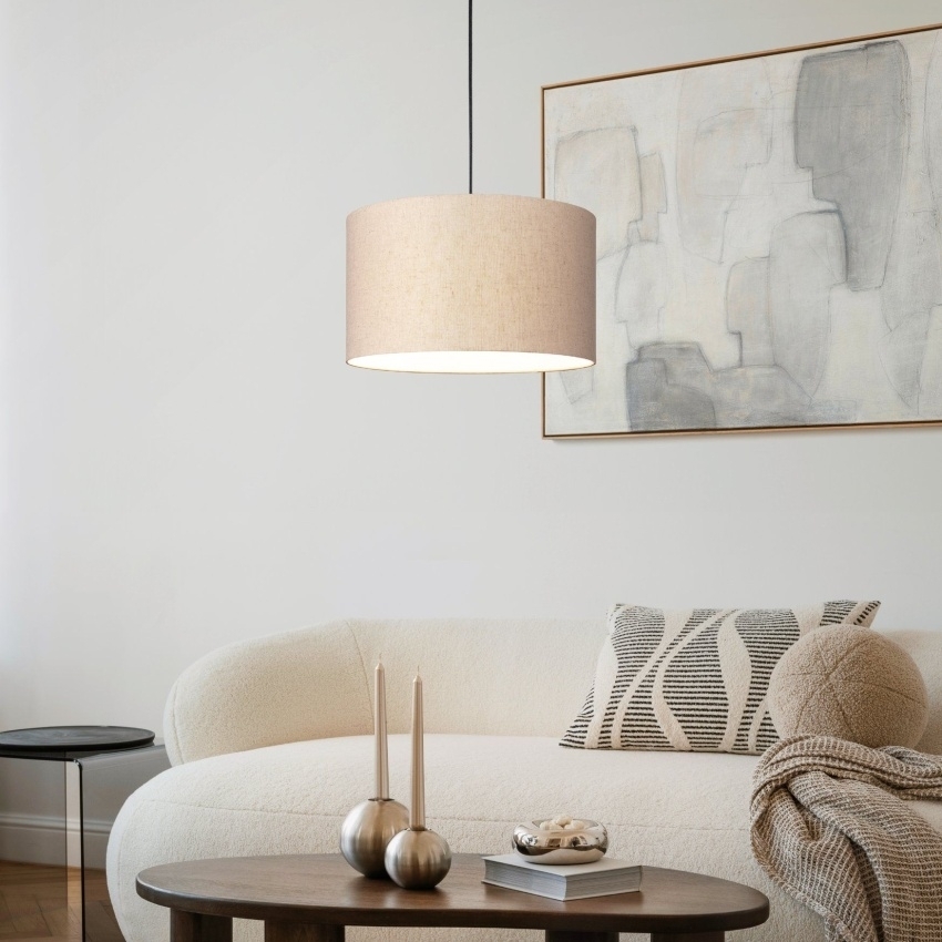 - Kulaté stínidlo z lněného materiálu v béžové barvě