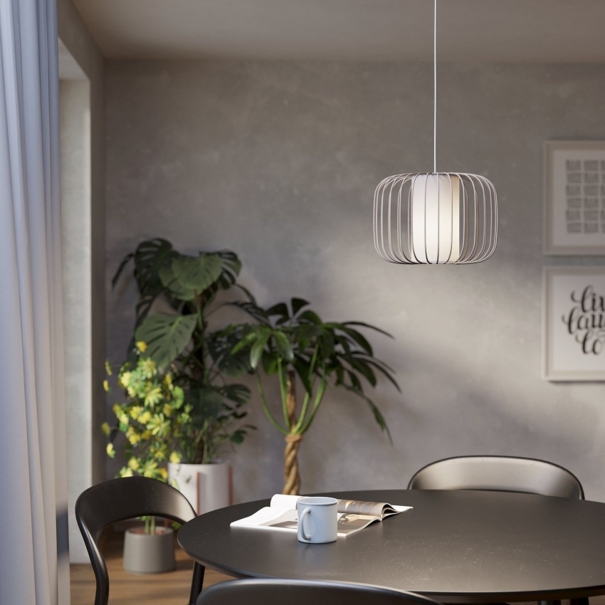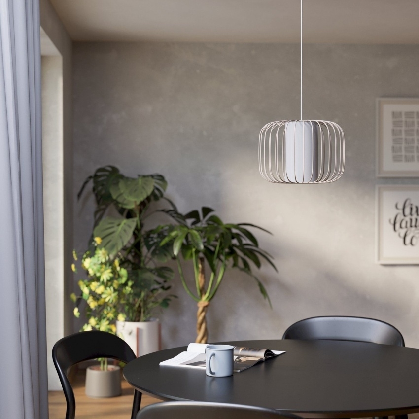 Závěsné svítidlo EGLO TERRAROSA 900867 spojuje moderní design s přírodním vzhledem. Vnější stínidlo tvoří elegantní kovová konstrukce v pískové barvě, která je doplněna vnitřním bílým textilním válečkem. Při rozsvícení vytváří svítidlo krásné světelné efekty a zajišťuje příjemné a rovnoměrné osvětlení. Skvěle se hodí do obývacího pokoje, jídelny či jiných obytných prostor, kde podtrhne styl interiéru. Žárovka není součástí balení, použít lze jakoukoliv s paticí E27.
