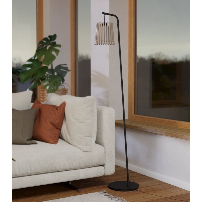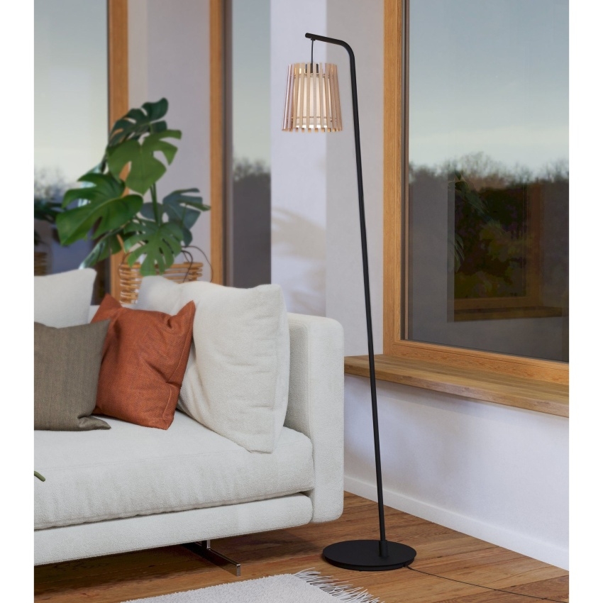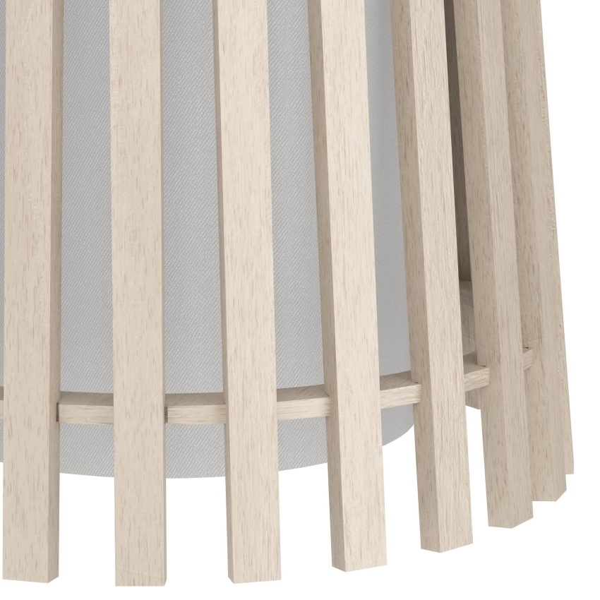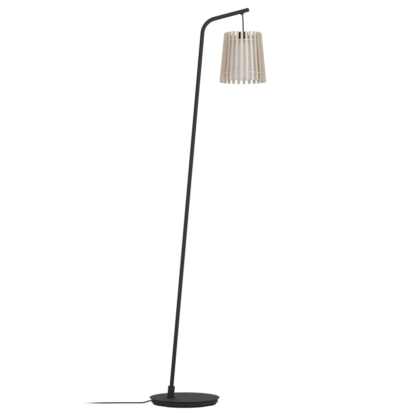 Stojací svítidlo EGLO FATTORIA 900905 vnese do interiéru přírodní styl a útulnou atmosféru. Stínidlo je tvořeno dvěma vnořenými částmi – vnější část je ze světlého pravého dřeva a vnitřní z bílého textilu. Celek je zavěšen na krátkém černém textilním kabelu a doplněn stabilní kovovou základnou ve stejné barvě. Lampa se pohodlně ovládá pomocí nožního spínače na kabelu. Po rozsvícení vytváří fascinující hry světla a stínu, které zútulní obývací pokoj, ložnici nebo jídelnu. Žárovka není součástí balení, použít lze jakoukoliv s paticí E27. Pro rovnoměrné osvětlení jsou ideální žárovky z opálového skla.