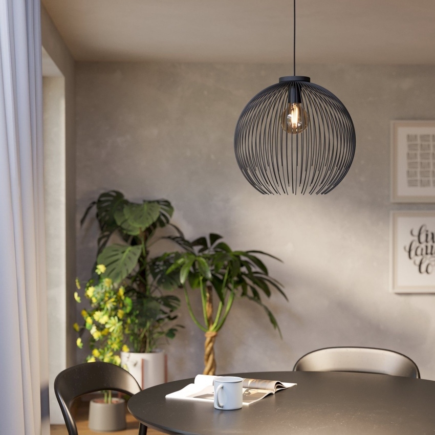 Stylové závěsné svítidlo EGLO Venezuela 901002 je elegantním doplňkem moderních interiérů. Díky průměru 400 mm a výšce až 1100 mm vynikne zejména nad jídelním stolem, v obývacím pokoji nebo v kuchyni. Černé ocelové tělo dodává svítidlu nadčasový vzhled, který se snadno kombinuje s různými styly zařízení. Patice E27 umožňuje použití různých typů žárovek až do výkonu 40 W, což poskytuje dostatek světla pro každodenní využití. Svítidlo je určeno pouze pro použití v interiéru s krytím IP20.