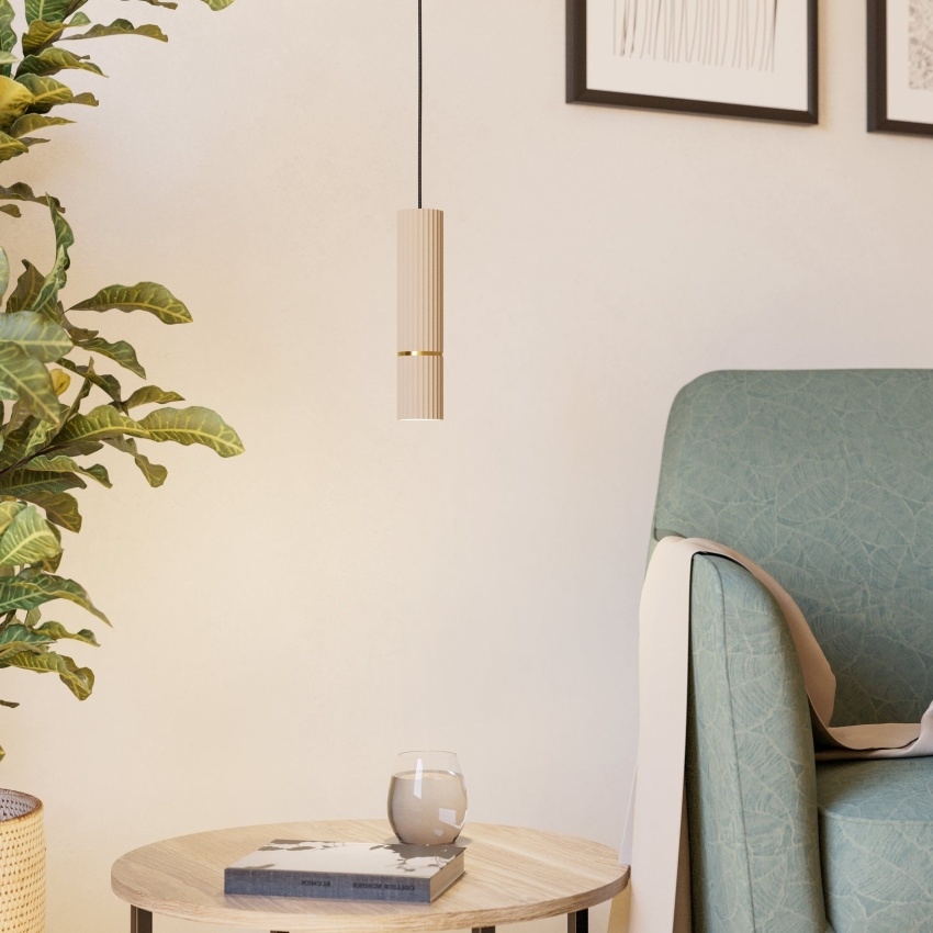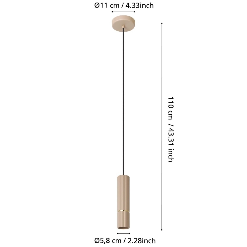 Moderní závěsné svítidlo EGLO Caminia 901151 je ideální volbou pro elegantní a úsporné osvětlení interiéru. Úzké válcové provedení s průměrem 60 mm a výškou 1100 mm působí minimalisticky a hodí se nad kuchyňský ostrůvek, jídelní stůl nebo do obývacího pokoje. Kovové tělo v pískové barvě s detaily v kartáčované mosazi podtrhuje luxusní vzhled svítidla. Je vybaveno paticí GU10 a součástí balení je i LED světelný zdroj s výkonem 5 W. Určeno je pro interiérové použití s krytím IP20.
