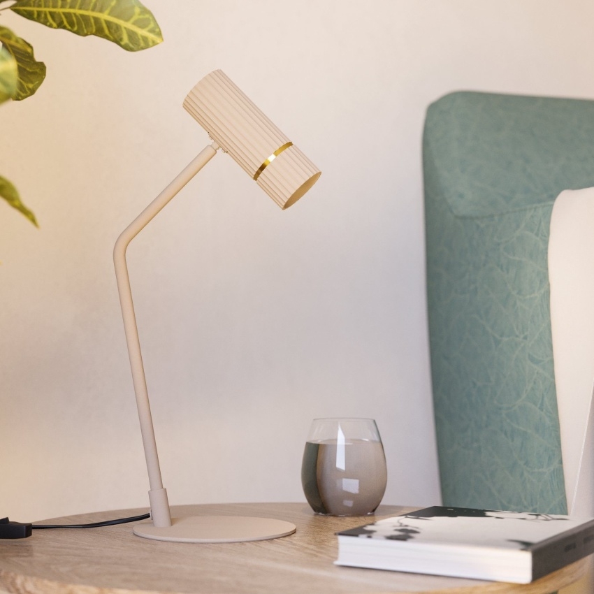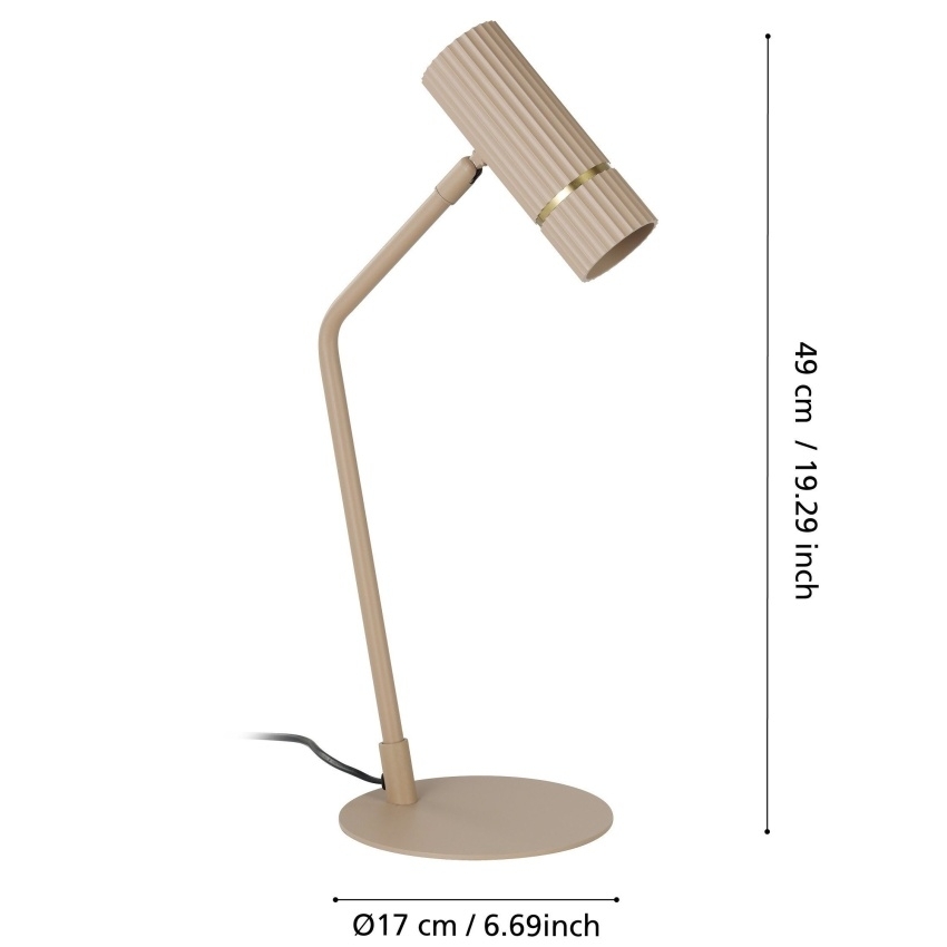 Elegantní stolní svítidlo EGLO Caminia 901154 zaujme minimalistickým designem a kombinací pískové barvy s detaily v kartáčované mosazi. Díky výšce 485 mm působí svítidlo decentně a zároveň dodá interiéru moderní nádech. Je vhodné na pracovní stůl, noční stolek nebo jako dekorativní prvek do obývacího pokoje. Svítidlo je vybaveno paticí GU10 a součástí balení je LED světelný zdroj s výkonem 5 W, který poskytuje úsporné a příjemné osvětlení. Určeno je pro použití v interiéru s krytím IP20.