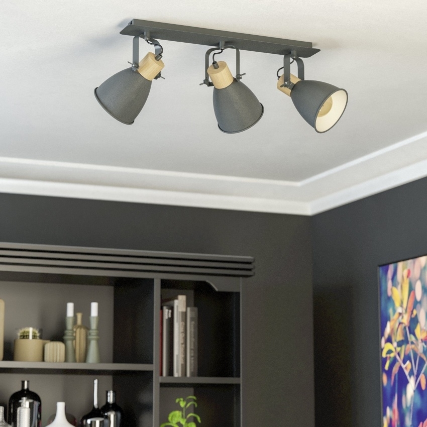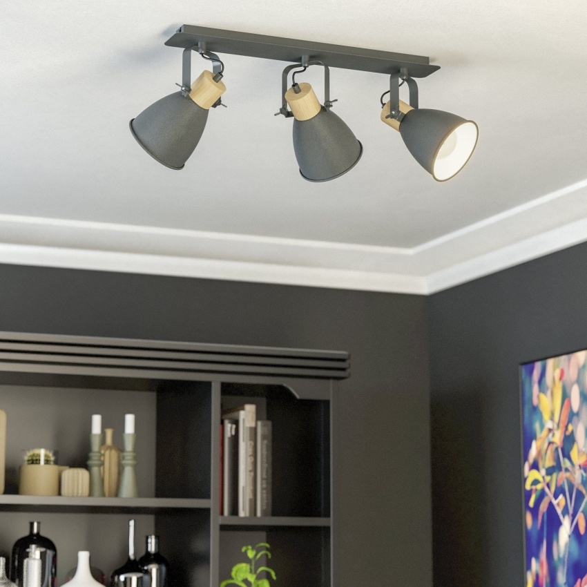 Stropní bodové svítidlo EGLO Coswarth 901176, antracit/krémová bílá/hnědá, 3×E27, IP20