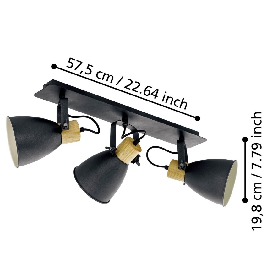 Bodové svítidlo EGLO Coswarth 901176 spojuje moderní industriální styl s přírodními prvky. Robustní kovová konstrukce v antracitové a krémově bílé barvě je doplněna hnědými detaily z masivního dřeva kaučukovníku, který má certifikaci FSC pro udržitelný původ. Díky třem paticím E27 a rozměrům 670 × 140 × 240 mm poskytuje dostatek světla pro větší prostory, jako jsou obývací pokoje, ložnice či jídelny. Svítidlo je určeno pro interiéry s krytím IP20 a umožňuje osazení žárovek do výkonu 3×40 W.