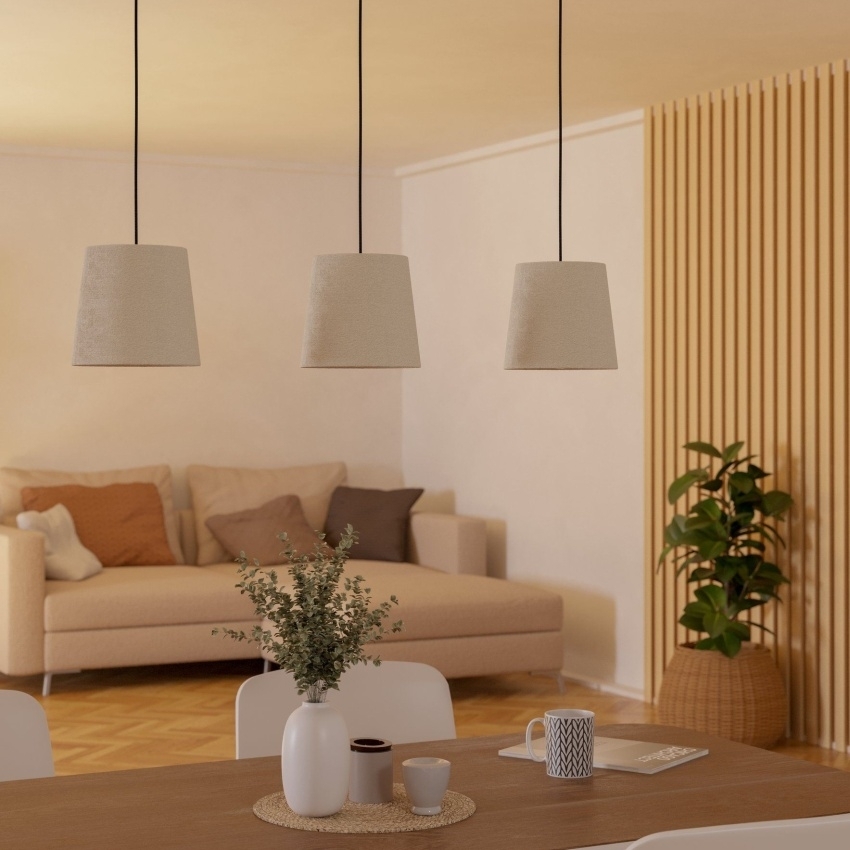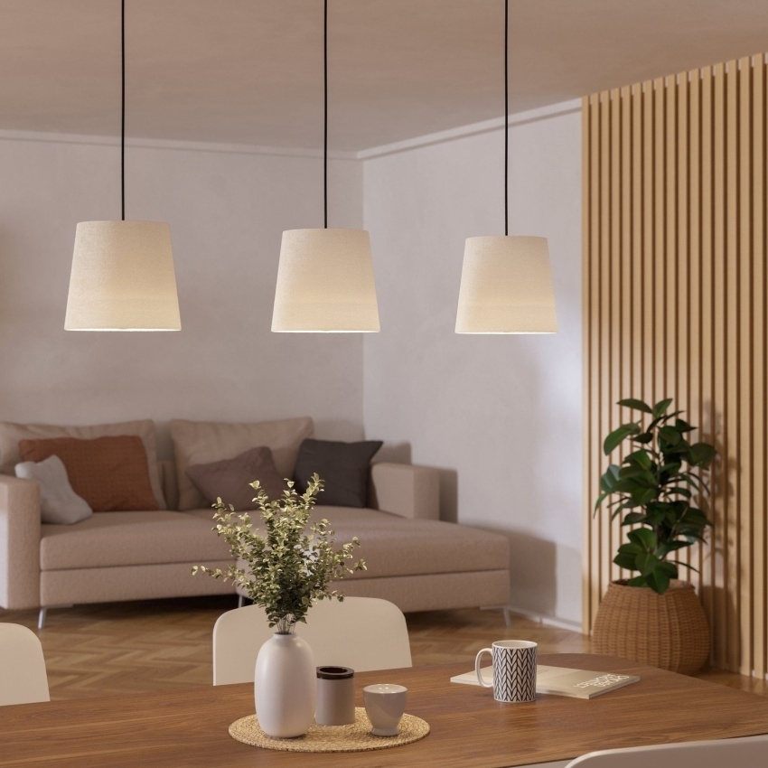 Závěsné svítidlo EGLO Febres 901263 je moderní a stylové svítidlo, které se stane elegantním doplňkem každého interiéru. Černé kovové tělo v kombinaci s bílými textilními stínidly působí kontrastně a zároveň nadčasově. Díky třem paticím E27 nabízí možnost použití různých typů žárovek až do výkonu 60 W, což zajistí dostatečné osvětlení i pro větší místnosti. S rozměry 880 × 180 × 1100 mm se hodí nad jídelní stůl, do obývacího pokoje či reprezentativních prostor. Svítidlo je určeno pro vnitřní použití s krytím IP20.