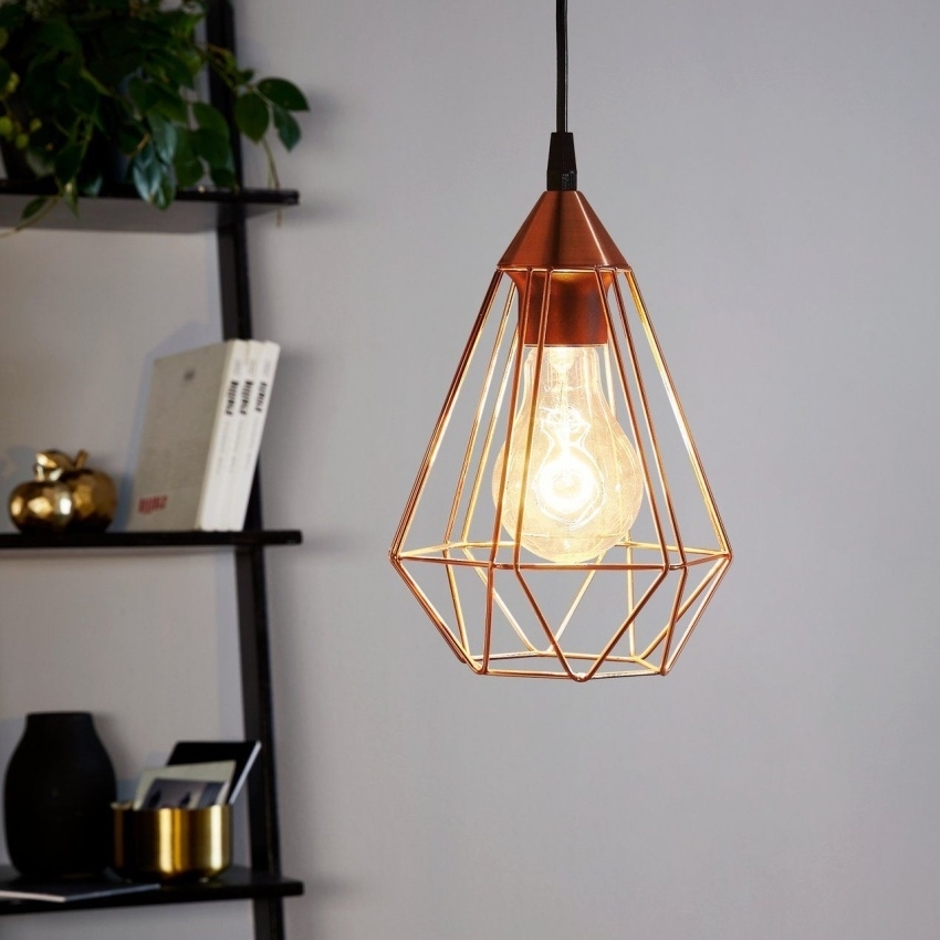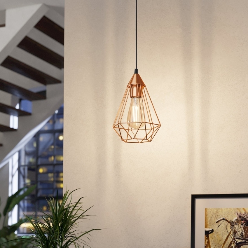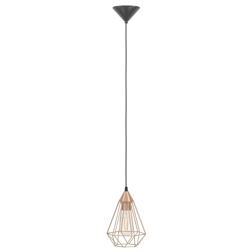 Závěsné svítidlo EGLO Tarbes 94193 přináší do interiéru moderní industriální vzhled s elegantním nádechem díky kovovému drátěnému stínidlu v měděné barvě. Geometrický kosočtvercový tvar vytváří při rozsvícení působivé světelné efekty a hru stínů. Kombinace s černým stropním vrchlíkem dodává svítidlu výrazný kontrast, který se hodí do obývacího pokoje, jídelny i ložnice. Svítidlo je kompatibilní s paticí E27, zdroj světla není součástí balení.