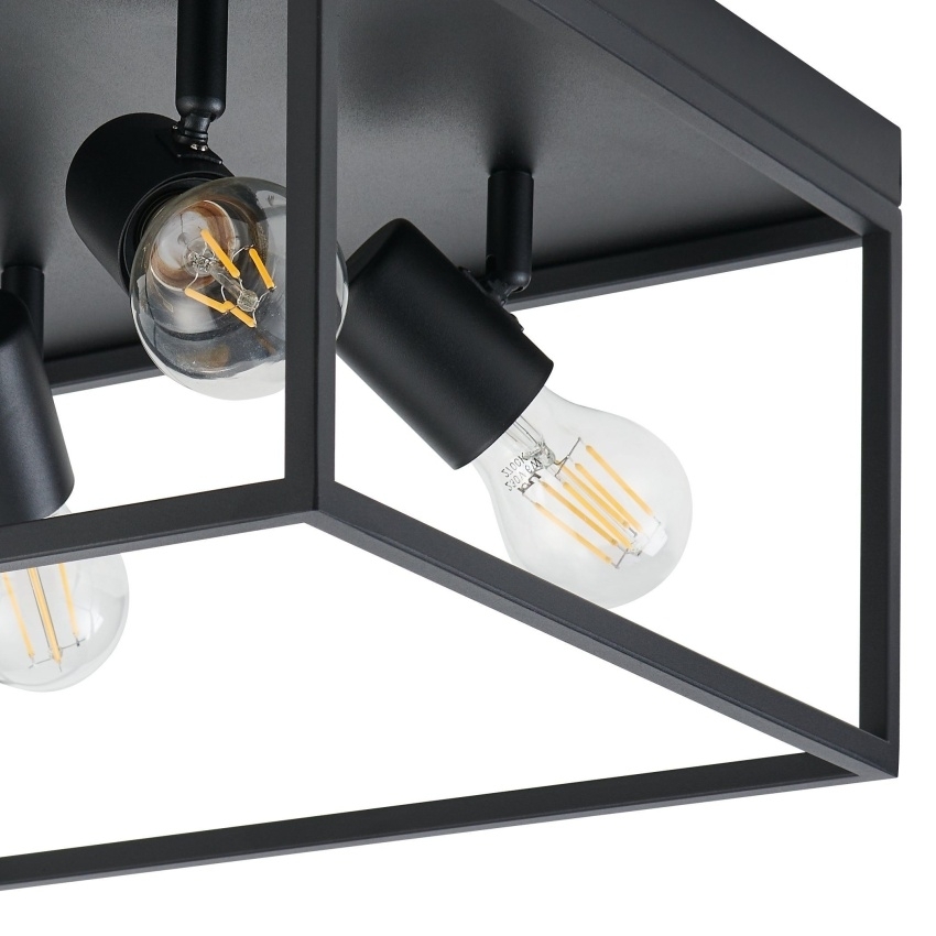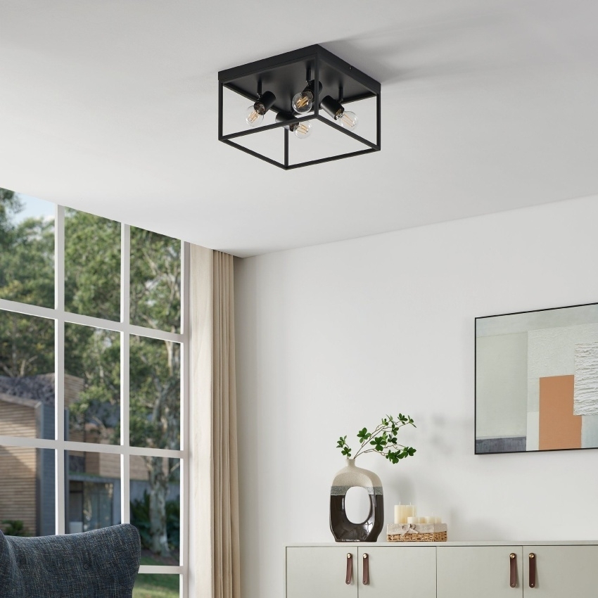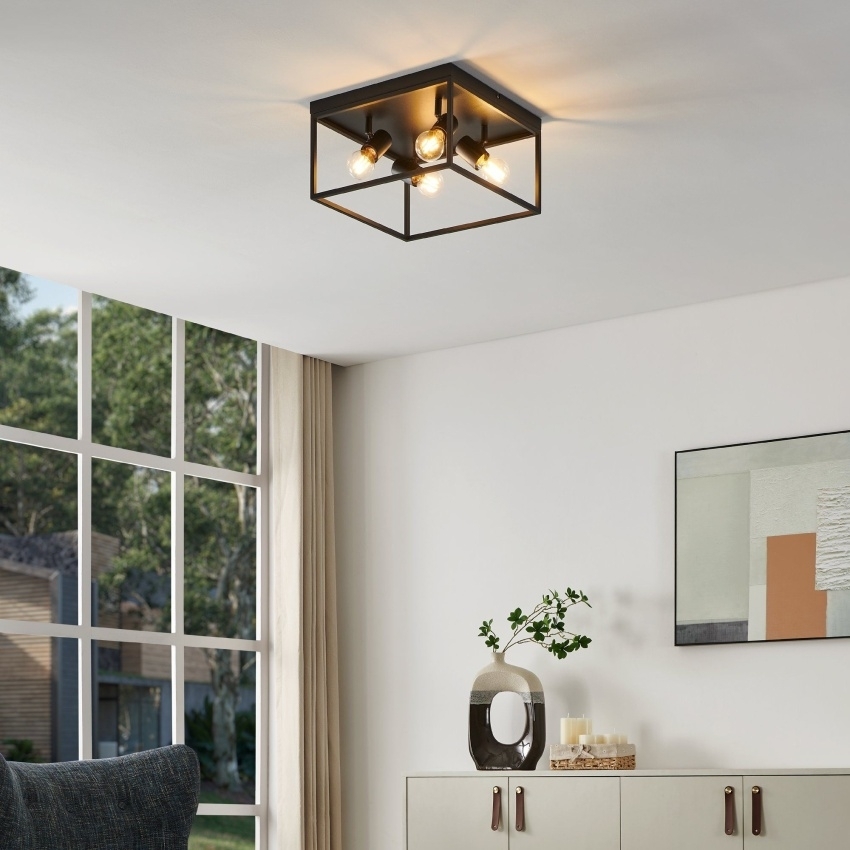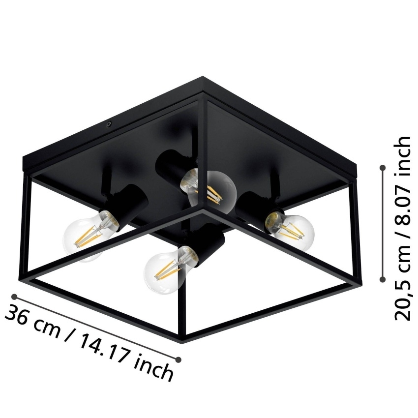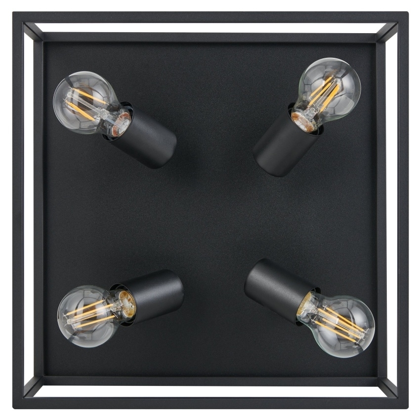 Stropní svítidlo EGLO SILENTINA 98334 je moderní osvětlení s minimalistickým designem a jednoduchými liniemi. Je vyrobeno z odolného černého kovu a díky svému univerzálnímu stylu se hodí do různých interiérů. Svítidlo je určeno pro čtyři žárovky s paticí E27 do výkonu 40W, přičemž celkový vzhled snadno dotvoříte výběrem vhodných dekorativních žárovek. Díky rozměru 36×36 cm je ideální volbou pro osvětlení menších prostor, jako jsou chodby, šatny, toalety nebo schodiště, ale uplatní se i v kuchyni, obývacím pokoji či pracovně.