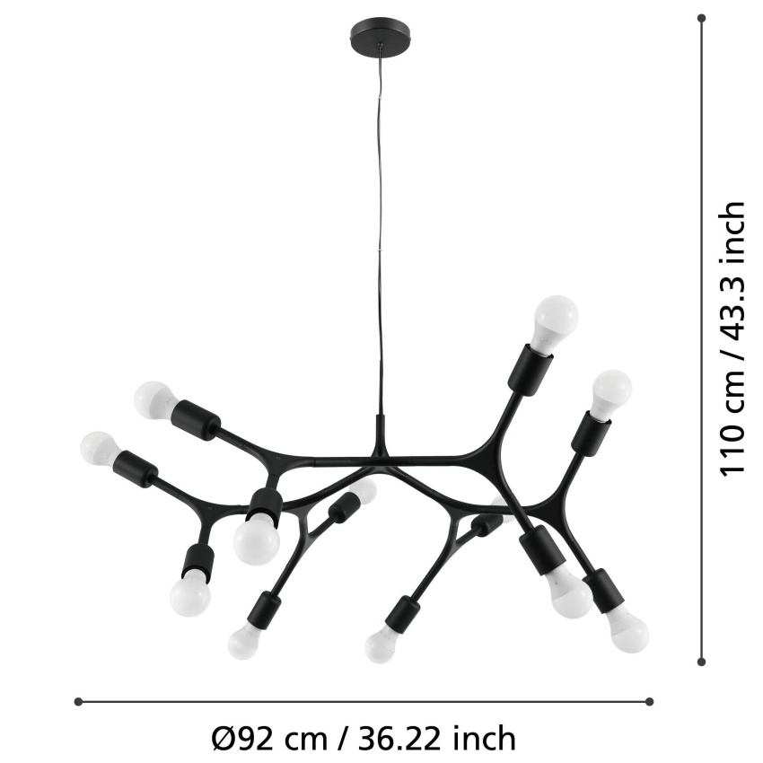 Závěsné svítidlo EGLO BOCADELLA 98347 z černé oceli pro 12 žárovek s paticí E27.