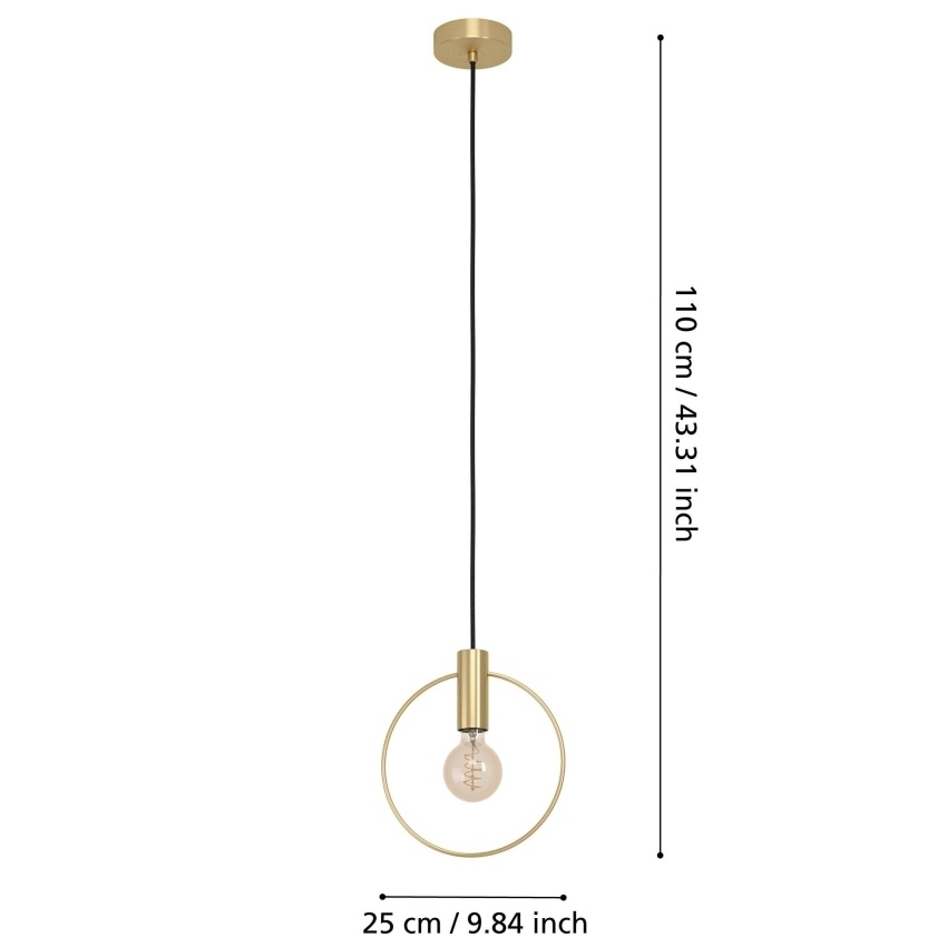 Závěsné svítidlo EGLO MANIZALES 98834 přináší do interiéru luxusní a elegantní vzhled díky provedení v kartáčované mosazi. Jeho jednoduché tvary působí moderně a nadčasově, a proto se hodí do široké škály interiérů. Svítidlo je ideální pro použití nad jídelní stůl, barový pult, ale také do obývacího pokoje, ložnice či vstupní haly. Díky vhodně zvolené žárovce s paticí E27 (do výkonu 40W, není součástí balení) můžete podtrhnout celkový vzhled svítidla a vytvořit útulnou atmosféru.