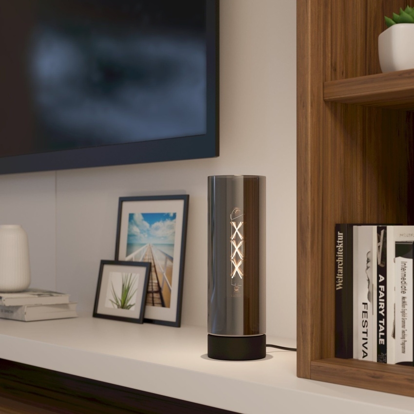Stolní svítidlo EGLO DAMASCO 1 98887 je stylová lampa, která spojuje jednoduchý tvar s elegantní kombinací černého kovu a kouřového skleněného stínidla. Díky svému modernímu vzhledu se hodí na noční stolek, komodu, odkládací stolek nebo jako doplňkové osvětlení do obývacího pokoje, jídelny či pracovny. Uplatní se také v hale nebo chodbě, kde dodá příjemné a útulné světlo. Svítidlo je určeno pro jednu žárovku s paticí E27 do výkonu 60W (není součástí balení).
