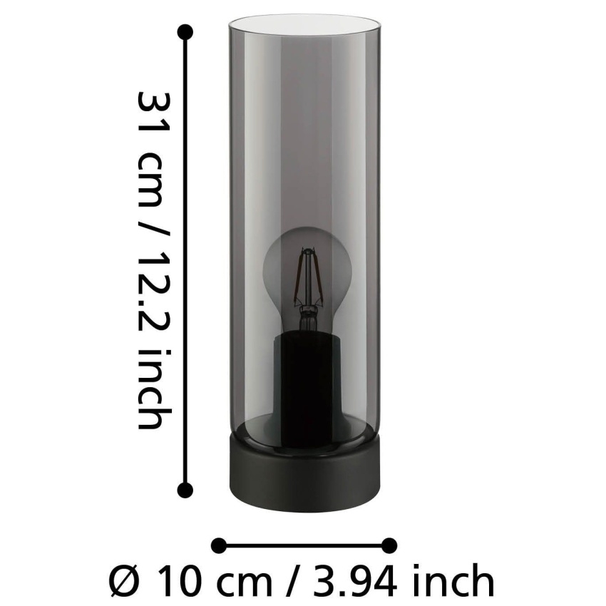 Stolní svítidlo EGLO DAMASCO 1 98887 v kombinaci černého kovu a kouřového skla s paticí E27.