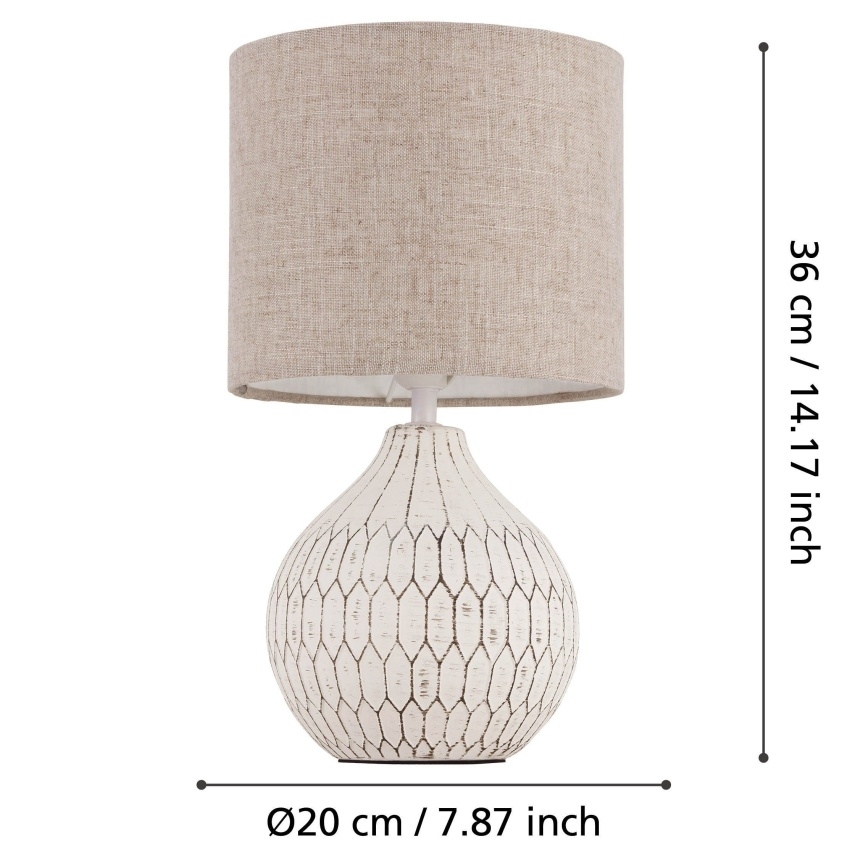 Stolní svítidlo EGLO BELLARIVA 3 99332 v bílé a světle hnědé barvě s textilním stínidlem a paticí E27.