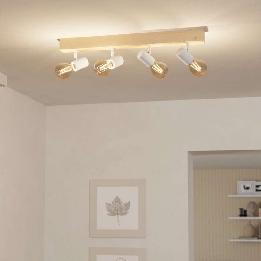 Stropní bodové svítidlo EGLO TOWNSHEND 3 99485 z hnědého dřeva a bílé oceli, určeno pro čtyři žárovky E27.