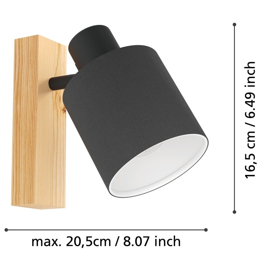 Nástěnné bodové svítidlo EGLO BATALLAS 99488 přináší do interiéru hravost, lehkost a útulnou atmosféru. Kombinace přírodního dřeva, černého kovu a textilního stínidla v černo-bílé barvě vytváří originální a stylový vzhled, který se hodí do moderních i klasických interiérů. Svítidlo je ideální k nasvícení postele, stolku nebo pracovní plochy, ale také do chodby, haly či na schodiště. Je určeno pro jednu žárovku E27 do výkonu 10W (není součástí balení).