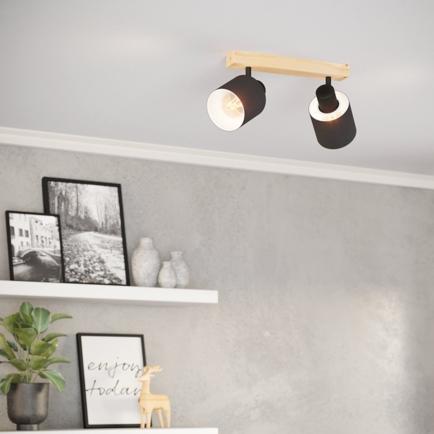 Stropní bodové svítidlo EGLO BATALLAS 99489 spojuje přírodní materiály s moderním designem a dodává interiéru hravý a útulný charakter. Kombinace borovicového dřeva, černého kovu a textilních stínidel v černo-bílé barvě působí elegantně a nadčasově. Svítidlo můžete instalovat na strop nebo na stěnu a je vhodné pro nasvícení postele, stolku, pracovní plochy, chodby, haly či schodiště. Díky univerzálnímu stylu se hodí i do obývacího pokoje, kuchyně, jídelny nebo pracovny. Je určeno pro dvě žárovky E27 do výkonu 10W (nejsou součástí balení).