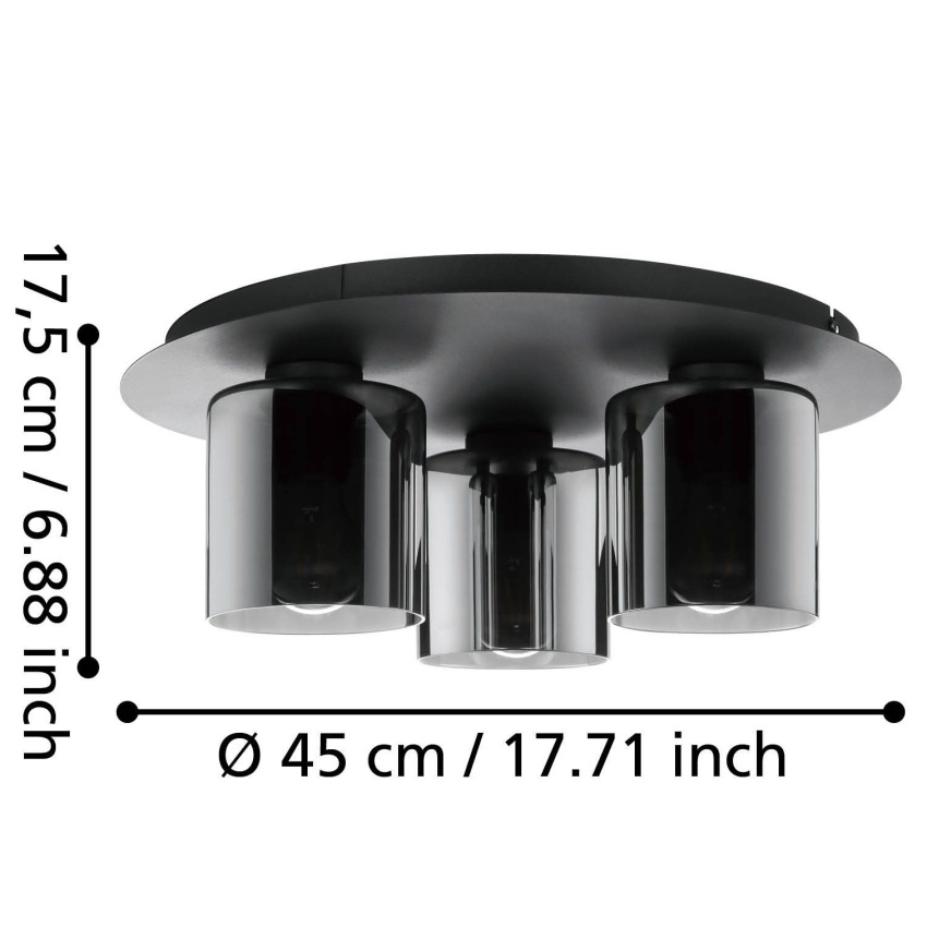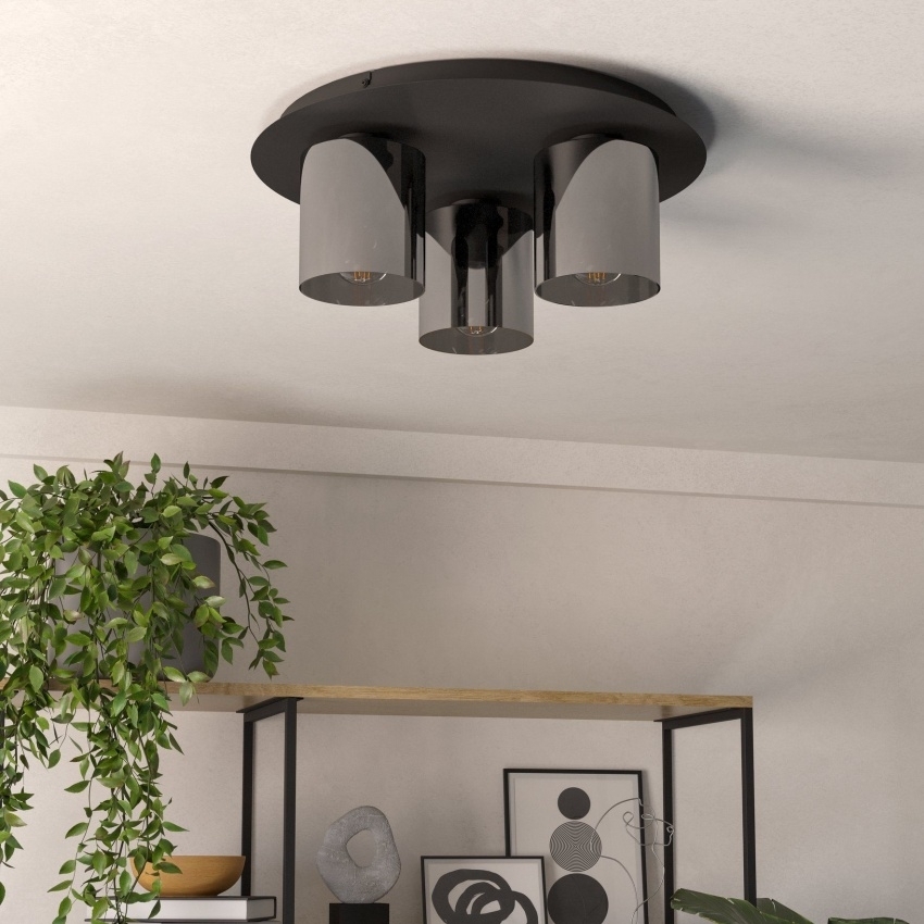 Stropní svítidlo EGLO GOROSIBA 1 99631 v černém provedení s kouřovými skleněnými stínidly dodá interiéru eleganci a styl.