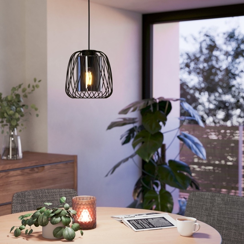Závěsné svítidlo EGLO FLORESTA 99705 v černém provedení s kouřovým sklem přináší moderní a efektní vzhled do interiéru.