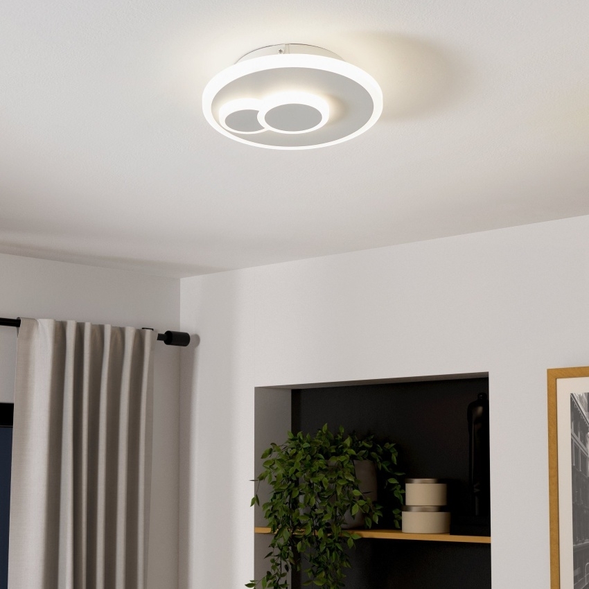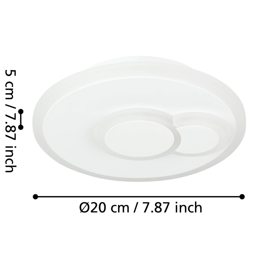 Stropní svítidlo EGLO CADEGAL 33942 v moderním bílém provedení zaujme svým elegantním vzhledem a zajímavými světelnými efekty. Svítidlo o průměru 200 mm a výšce 50 mm disponuje integrovaným LED zdrojem o výkonu 9 W, který poskytuje světelný tok 1192 lm a neutrální bílé světlo 4000K. Díky svíticímu okraji a menším vnitřním kroužkům vytváří efektní světelnou hru, která se skvěle hodí do moderních interiérů. Svítidlo je vyrobeno z oceli a plastu, energetická třída E, stupeň krytí IP20.