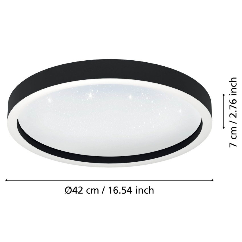 Chytré stropní LED svítidlo EGLO MONTEMORELOS-Z 900411 v černém provedení s výkonem 17,8 W, světelným tokem 2150 lm, RGB + CCT funkcí a efektem hvězdné oblohy.