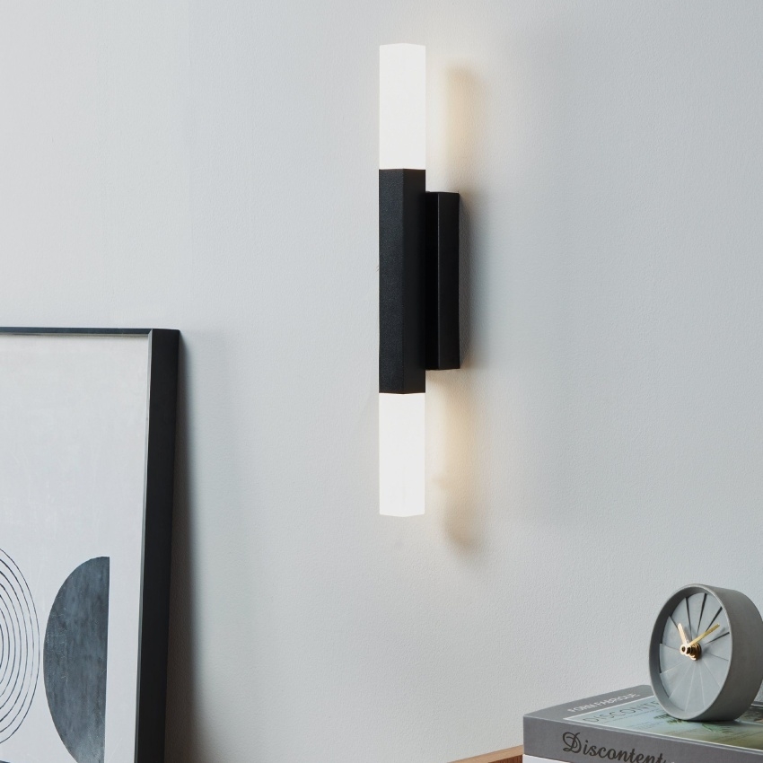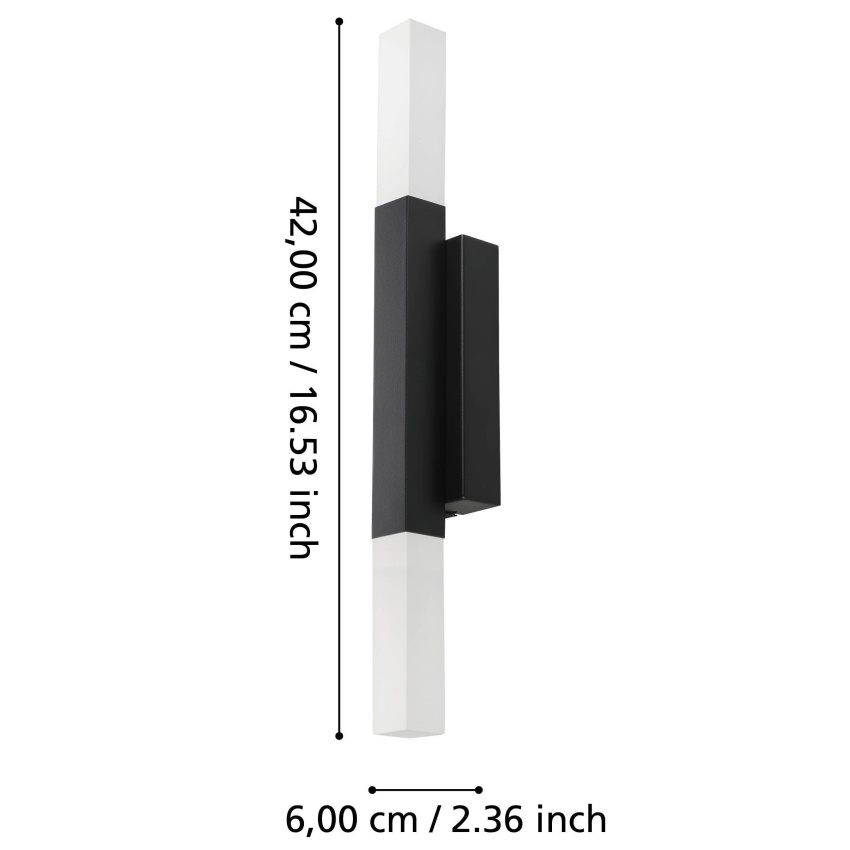 Nástěnné koupelnové svítidlo EGLO ALCUDIA 900617 je moderní LED osvětlení s černým kovovým tělem a dvěma kvádrovými světelnými prvky ze saténového plastu. Díky krytí IP44 je odolné proti stříkající vodě a lze jej bez obav použít v koupelně, například nad nebo vedle zrcadla. Integrované LED diody poskytují příjemné teplé bílé světlo s výkonem 2x5,5 W a celkovým světelným tokem 1200 lm. Elegantní design svítidla se hodí do moderních interiérů a zajišťuje stylové i funkční osvětlení.