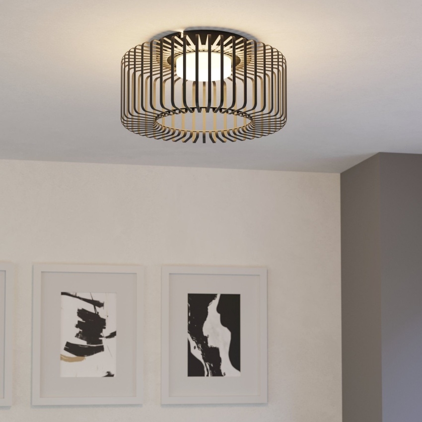 Moderní LED svítidlo GINESTRONE-Z z chytré řady EGLO Connect-Z nabízí spojení elegantního designu a funkčního osvětlení. Kulaté stínidlo tvoří černé kovové pásky s vnitřním LED profilem z bílého plastu, které při rozsvícení vytvářejí atraktivní světelné efekty. Díky integrovaným LED diodám si můžete vybrat teplotu bílého světla v rozsahu 2700–6500 K nebo barvy RGB a přizpůsobit tak atmosféru prostoru podle nálady. Svítidlo umožňuje ovládání přes aplikaci AwoX Home Control, Bluetooth, ZigBee 3.0 nebo kompatibilní hlasové asistenty a nabízí také funkce jako stmívání, časovač či simulaci přítomnosti. Ideální pro moderní interiéry, kde vynikne jeho minimalistický New Nordic design.