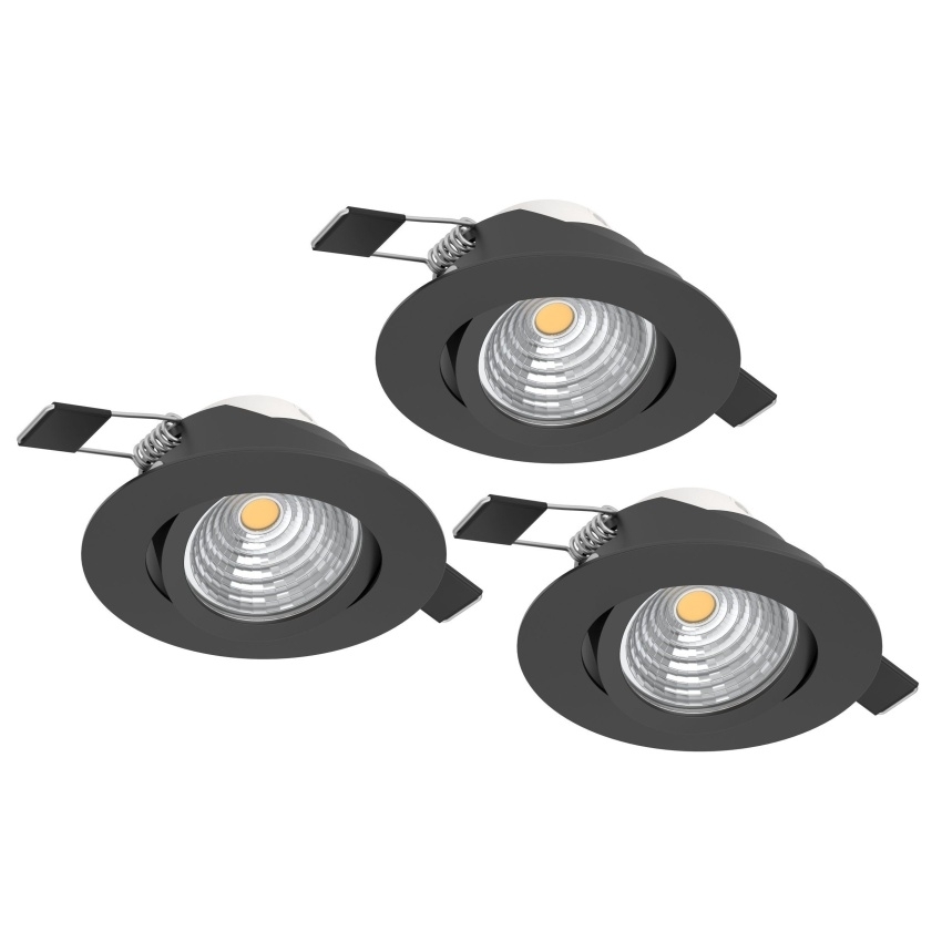 Zápustné LED svítidlo EGLO SALICETO 900747, 3×6 W, 1350 lm, 2700 K, černá (set 3 ks).
