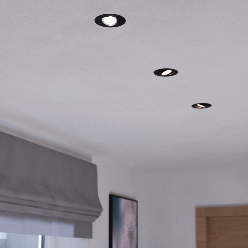 Stylová sada tří vestavných LED svítidel EGLO SALICETO přináší moderní vzhled a efektivní osvětlení pro interiér. Každé svítidlo má minimalistický kruhový design v elegantní černé barvě, který se hodí do moderních prostor i kontrastních stropů. Integrované LED diody s teplým bílým světlem 2700 K poskytují příjemné a útulné osvětlení vhodné pro obývací pokoje, ložnice či chodby. Svítidla jsou stmívatelná, což umožňuje přizpůsobit jas podle aktuální potřeby. Díky kompaktním rozměrům s průměrem 88 mm a vestavnou hloubkou 88 mm se snadno instalují do podhledů i sádrokartonových stropů. Kvalitní hliníkové tělo zajišťuje dlouhou životnost a moderní vzhled.