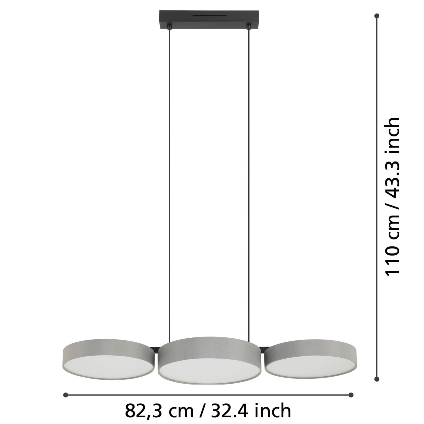 Závěsné chytré LED svítidlo EGLO BARBANO-Z 900856, 3×7,5 W, 2550 lm, 2700–6500 K, RGB+TW, šedá.