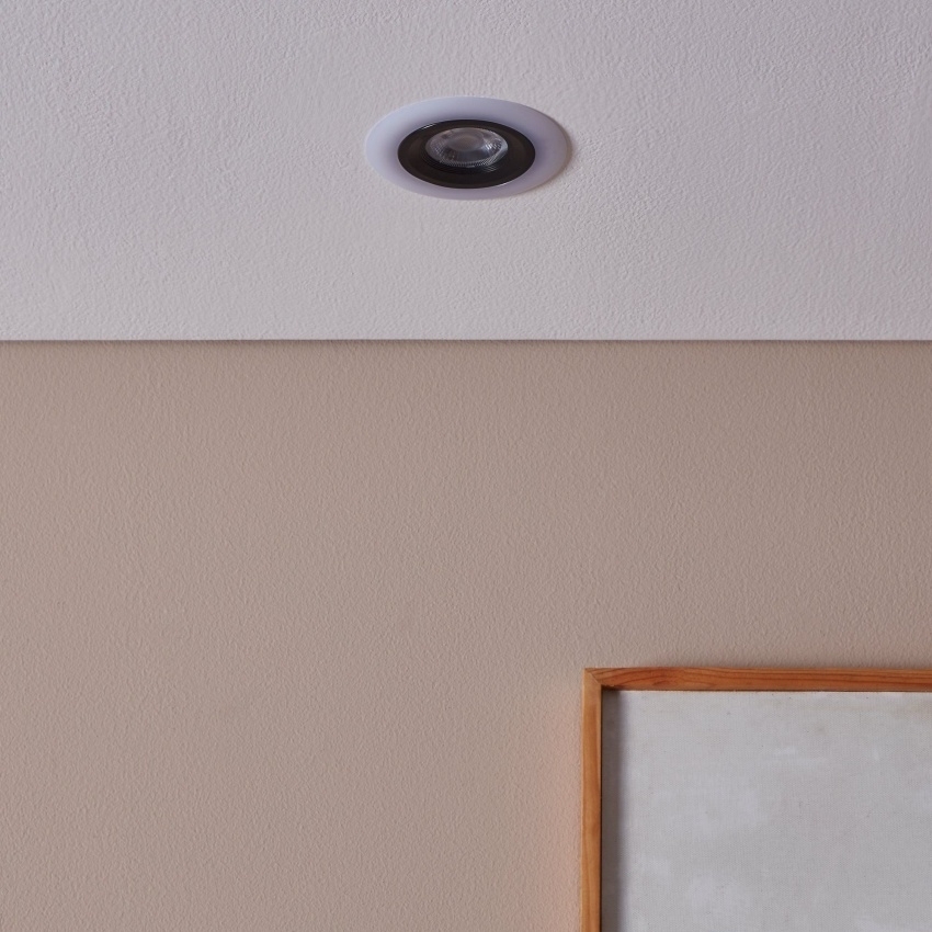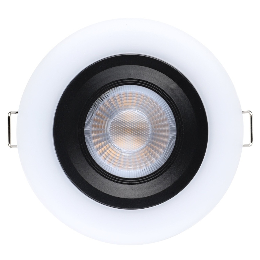 Elegantní vestavné svítidlo EGLO CALONGE 900914 kombinuje černé plastové tělo s osvětleným vnějším prstencem v bílé barvě, čímž vytváří moderní a decentní kontrast. Integrované LED diody poskytují příjemné teplé bílé světlo o teplotě 3000 K a výkonu 4,8 W. Pomocí běžného nástěnného vypínače lze snadno přepínat mezi třemi úrovněmi osvětlení – centrální světlo, prstencové světlo nebo kombinace obou. Praktická paměťová funkce navíc uchová poslední zvolené nastavení. Svítidlo je ideální volbou pro moderní interiéry, jako jsou kuchyně, obývací pokoje či chodby. Pro montáž je nutný výřez o průměru 70 mm.