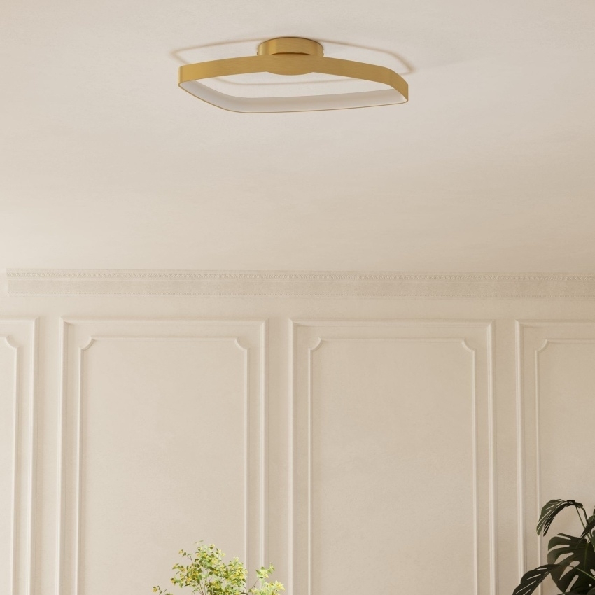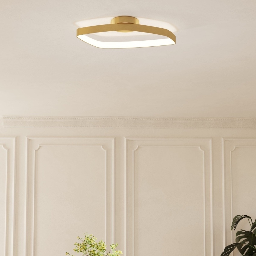 Stylové stropní svítidlo EGLO VALLEROSA 900916 zaujme elegantním organickým tvarem a luxusním povrchem z kartáčované mosazi. Integrované LED diody pod bílým plastovým difuzorem vytvářejí příjemné teplé bílé světlo o teplotě 3000 K, které přináší do interiéru útulnou atmosféru. Svítidlo lze stmívat pomocí kompatibilního otočného nástěnného stmívače, což umožňuje regulovat intenzitu světla podle aktuální nálady nebo účelu osvětlení. Je ideální volbou pro moderní interiéry – od obývacích pokojů přes ložnice až po vstupní prostory, kde se stane nejen zdrojem světla, ale i výrazným designovým prvkem.