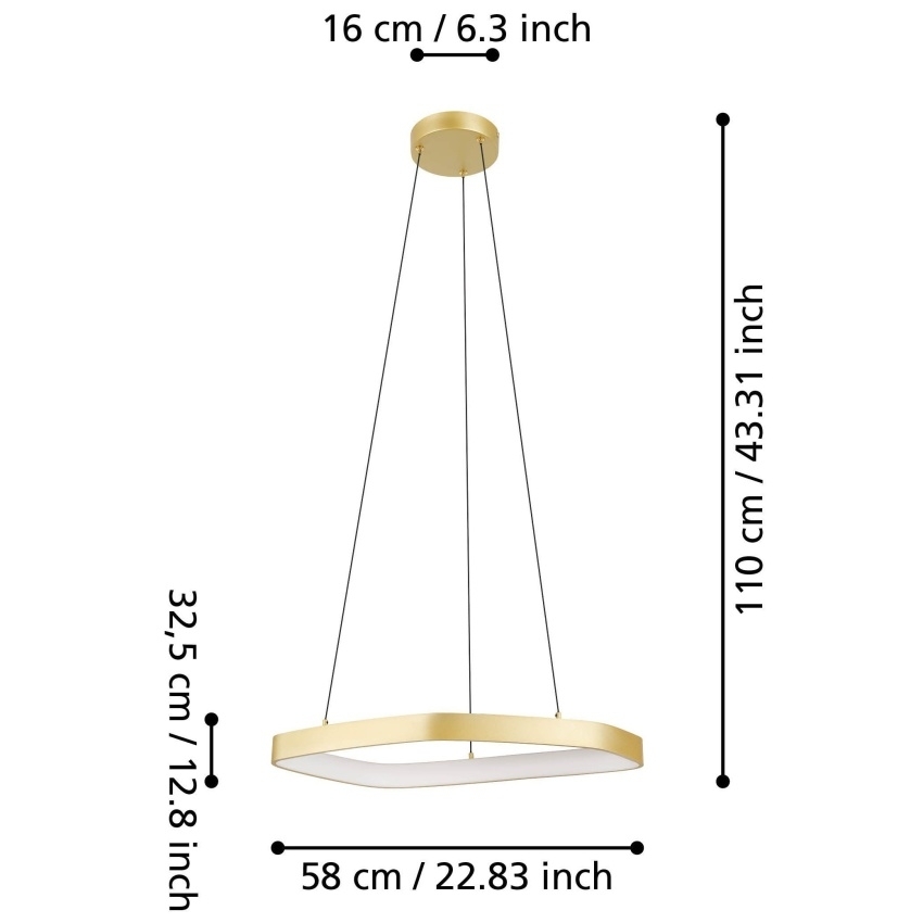 Závěsné LED svítidlo EGLO VALLEROSA 900917, 25,2 W, 3000 lm, 3000 K, kartáčovaná mosaz.