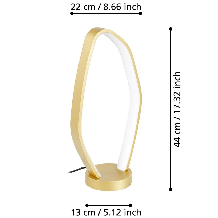 Elegantní stolní svítidlo EGLO VALLEROSA 900918 v provedení kartáčovaná mosaz přináší do interiéru harmonii moderního designu a jemného světla. Organicky tvarovaný LED profil s bílým plastovým difuzorem vyzařuje příjemné teplé bílé světlo o teplotě 3000 K, které vytváří útulnou atmosféru v ložnici, obývacím pokoji nebo pracovně. Svítidlo se snadno ovládá praktickým vypínačem umístěným na přívodním kabelu. Díky kvalitnímu zpracování z hliníku a oceli působí lampa elegantně a zároveň odolně, čímž se stává stylovým doplňkem moderní domácnosti.