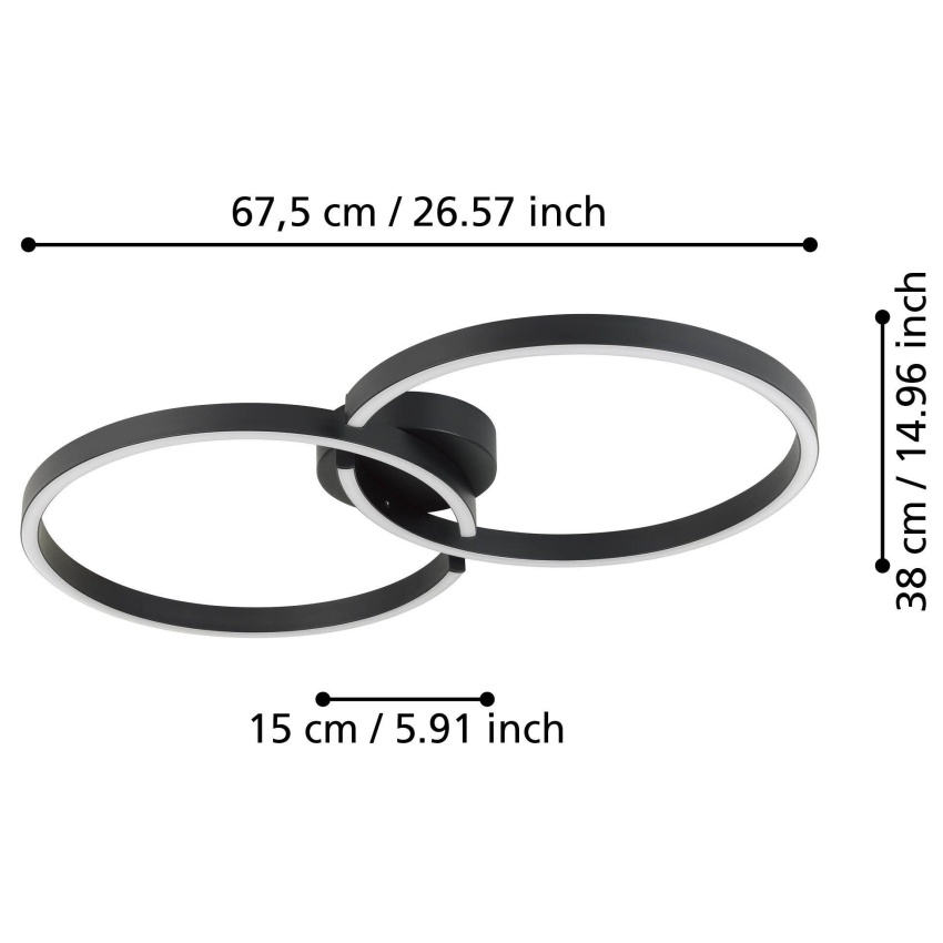 Moderní stropní svítidlo EGLO AMANDOLO 900955 v elegantním černém provedení zaujme svým minimalistickým designem a pokročilými funkcemi chytrého osvětlení. Integrované LED diody nabízejí variabilní nastavení teploty bílé barvy v rozsahu 2700–6500K i možnost barevného osvětlení RGB. Díky funkci stmívání a paměťové funkci lze snadno přizpůsobit intenzitu i barvu světla podle aktuální nálady či situace. Svítidlo se hodí do obývacího pokoje, ložnice či pracovny a přináší nejen funkční, ale i estetické osvětlení interiéru.