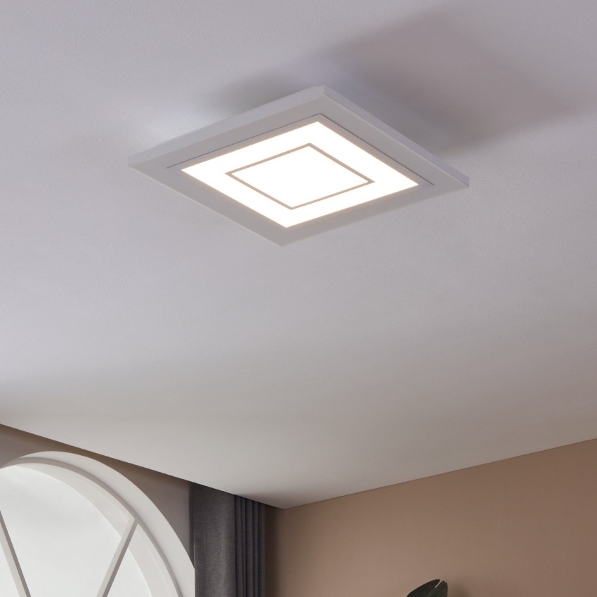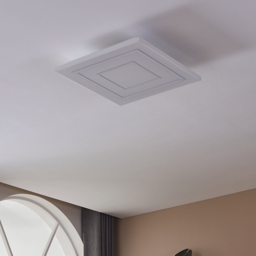 Moderní stropní svítidlo EGLO ALBARCA 900959 zaujme minimalistickým bezrámovým designem s dekorativními čtvercovými prvky v bílé barvě. Integrované LED diody nabízejí možnost volby teploty světla od teplé po studenou bílou a navíc RGB barevné osvětlení vnějšího prstence. Pomocí přiloženého dálkového ovladače lze snadno ovládat barvu světla, jas i intenzitu osvětlení. Díky svému elegantnímu vzhledu je ideální pro moderní interiéry – do obývacího pokoje, kuchyně, ložnice či dětského pokoje.