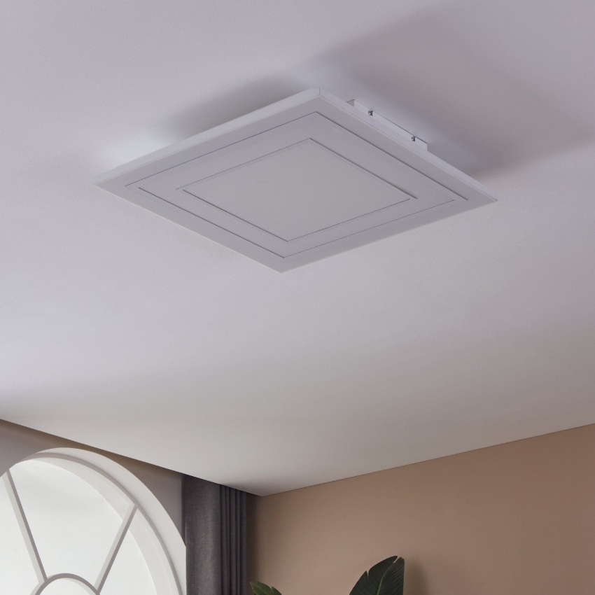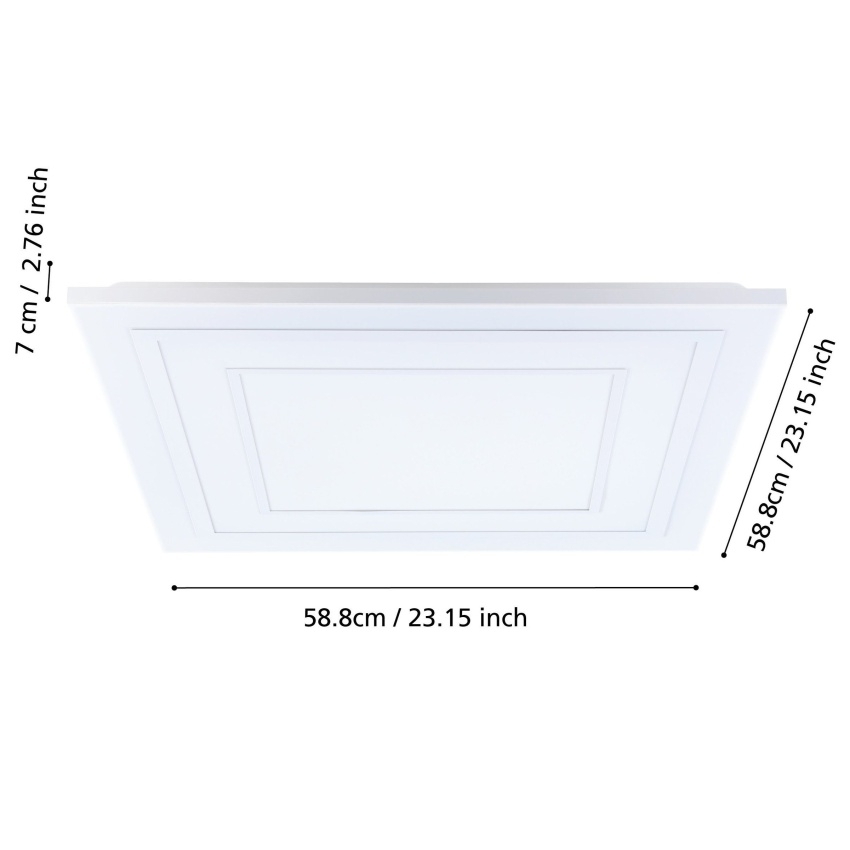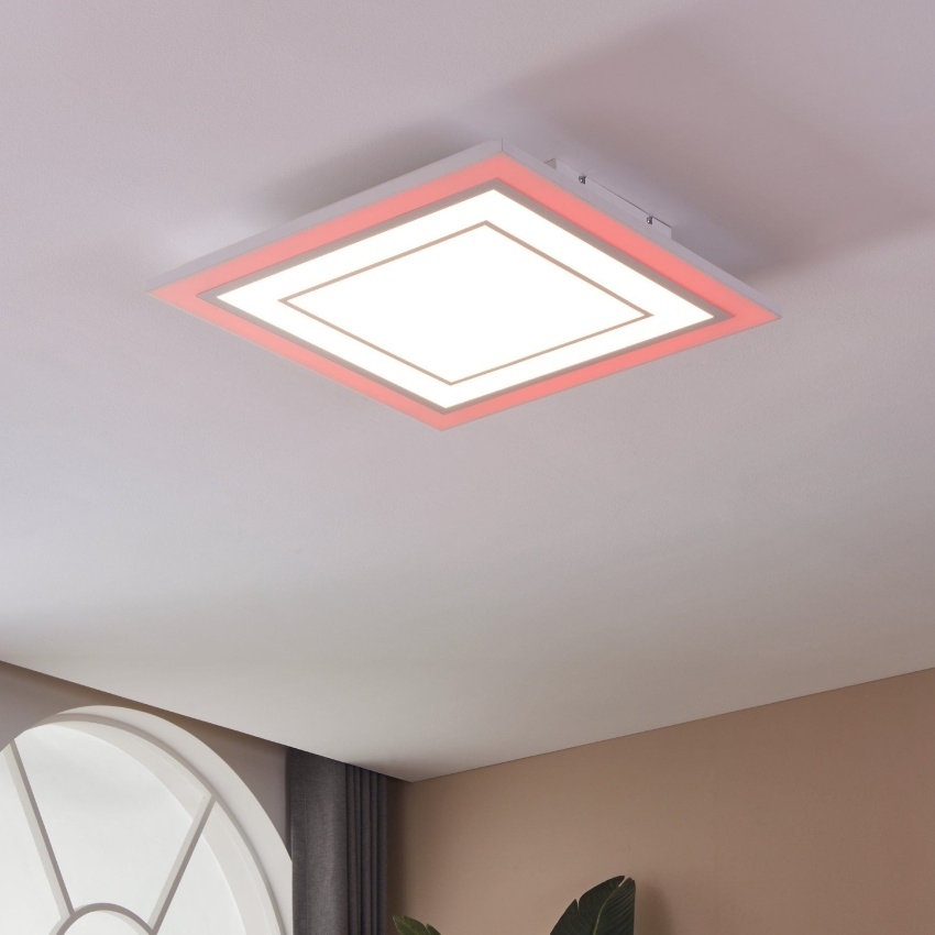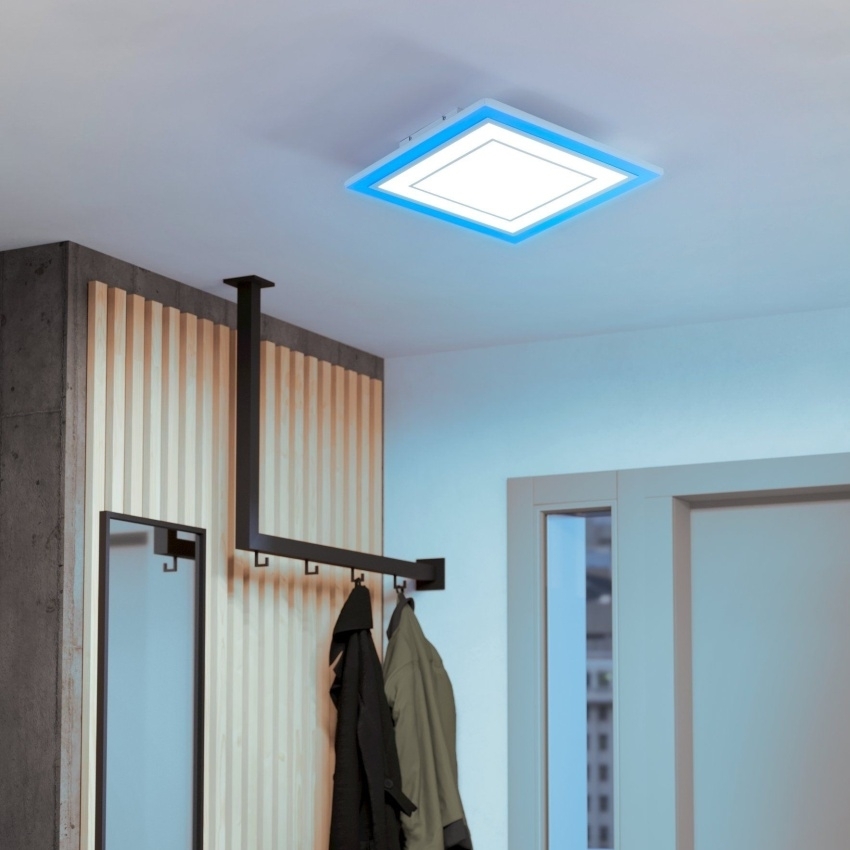 Elegantní stropní svítidlo EGLO ALBARCA 900961 zaujme svým moderním bezrámovým designem doplněným o dva ozdobné čtvercové prvky v bílé barvě. Integrované LED diody umožňují nastavení teploty světla od teplé po studenou bílou a také výběr z široké škály barev RGB. Pomocí přiloženého dálkového ovladače lze snadno měnit barvu světla, jas i intenzitu osvětlení. Díky minimalistickému vzhledu a výborným světelným parametrům se hodí do každé moderní domácnosti – ideální do obývacího pokoje, ložnice, kuchyně nebo dětského pokoje.