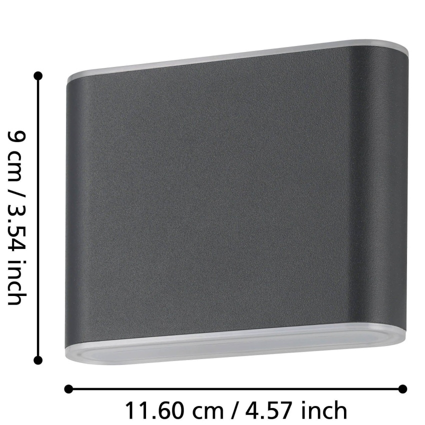 EGLO SVÍTIDLO LED 901025 GRUTTI 2X2,9W 640LM 3000K, 4000K, 6500K VENKOVNÍ NÁSTĚNNÉ ANTRACITOVÁ