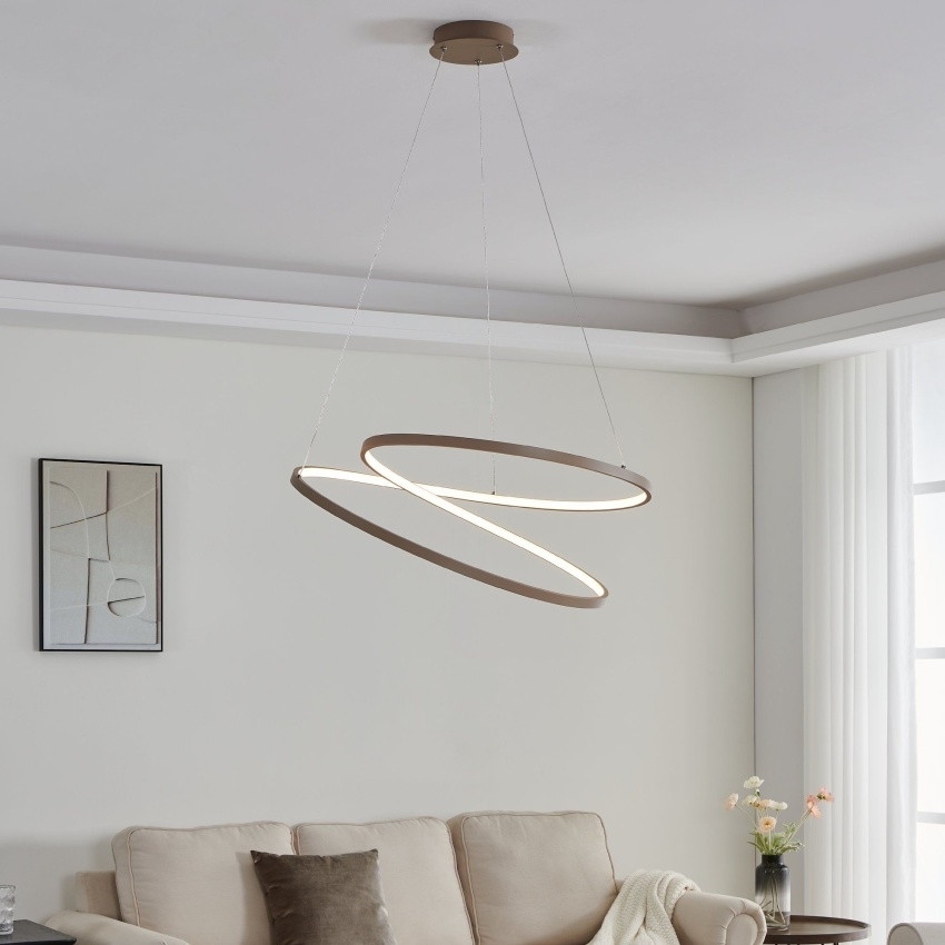 Elegantní závěsné svítidlo EGLO RUOTALE 901141 přináší moderní design v kombinaci pískové barvy a bílého difuzoru. Kruhový tvar o průměru 700 mm a vysoký světelný výkon 5000 lm zajišťují rovnoměrné a příjemné osvětlení místnosti. Díky teplé bílé barvě světla (3000 K) vytváří útulnou atmosféru vhodnou pro obývací pokoj, jídelnu nebo reprezentativní prostory. Svítidlo je vyrobeno z kvalitního hliníku, oceli a odolného plastu, což zaručuje dlouhou životnost i elegantní vzhled. Minimalistické zpracování působí decentně a vkusně zapadne do moderního interiéru.