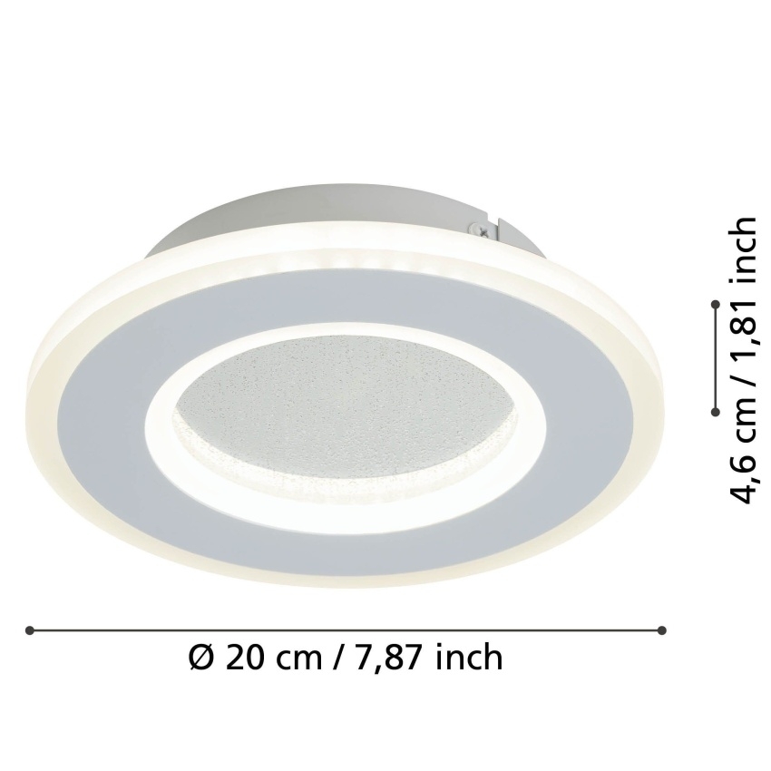 EGLO MACCHIONI 901231 je elegantní nástěnné svítidlo s integrovaným LED zdrojem, které poskytuje jasné a rovnoměrné osvětlení o světelném toku 1560 lm. Neutrální bílá 4000 K je ideální pro chodby, technické místnosti nebo pracovní zóny, kde vyžadujete přirozené podání barev bez nádechu do teplé či studené. Tělo z oceli a plastu ve bílé barvě doplňuje plastové stínidlo s jemným třpytivým efektem, které rozptyluje světlo a zvyšuje vizuální komfort. Díky kompaktním rozměrům s průměrem 200 mm a hloubkou 45 mm se svítidlo snadno začlení do interiéru. Stupeň krytí IP20 je určen pro použití v suchém prostředí a integrovaný zdroj je součástí balení.