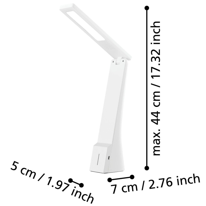 Stolní LED svítidlo EGLO LA SECA 97044, 1,8 W, 170 lm, 3000 K / 4000 K / 5000 K (volitelná bílá), bílé, USB napájení.