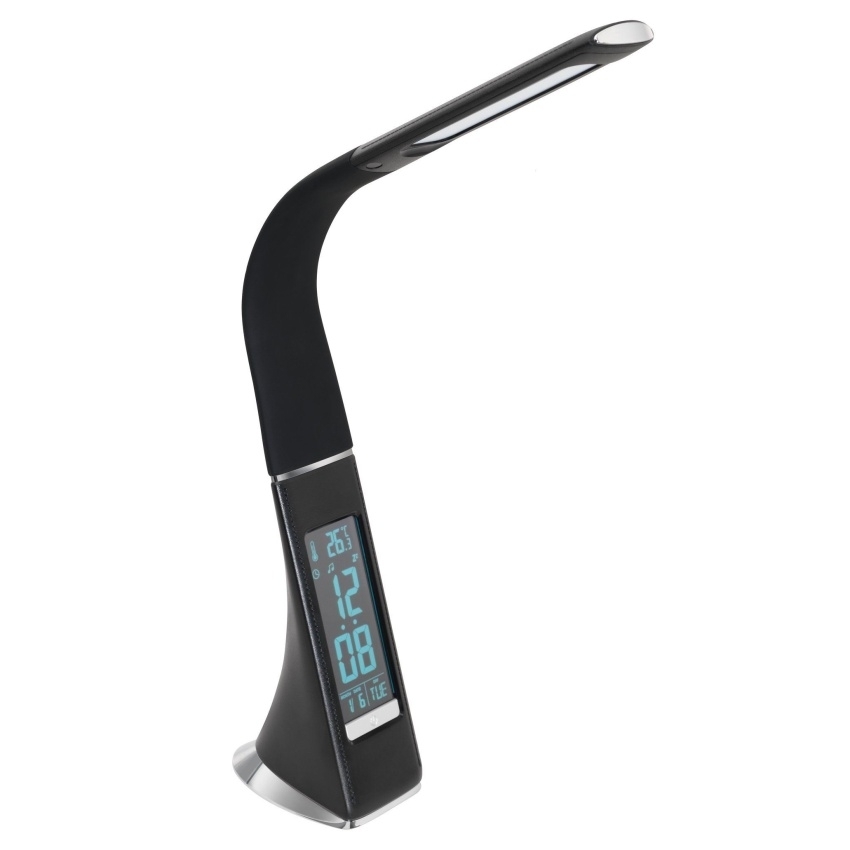 EGLO COGNOLI 97914 je moderní stolní LED lampička v elegantním černém provedení, která spojuje stylový vzhled s praktickými funkcemi. Je vybavena dotykovým ovládáním a stmívatelným LED světelným zdrojem s neutrální bílou barvou světla o teplotě 5000 K, vhodnou pro čtení i práci. Vestavěný digitální displej zobrazuje čas, datum a teplotu, díky čemuž lampička poslouží i jako praktický doplněk na pracovní nebo noční stolek. Je ideální pro studenty, kanceláře i moderní domácnosti a díky kompaktním rozměrům ji lze snadno umístit kamkoliv.