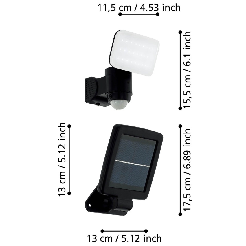 EGLO SVÍTIDLO LED 98195 SOLAR CASABAS 5W 470LM 6500K VENKOVNÍ NÁSTĚNNÉ SE SENZOREM ČERNÁ IP44