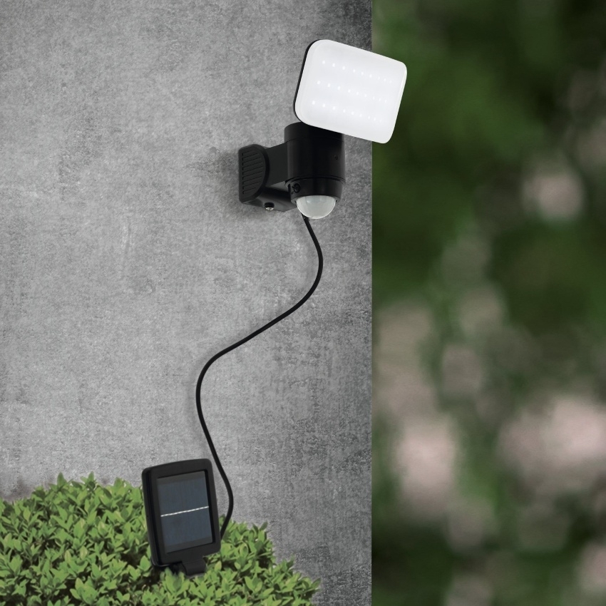 Venkovní solární LED svítidlo EGLO CASABAS 98195, 5 W, 470 lm, 6500 K (studená bílá), se senzorem pohybu, černé, IP44.