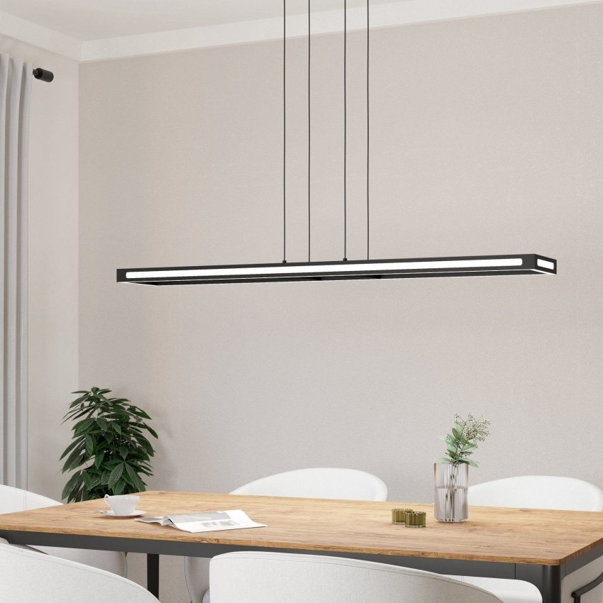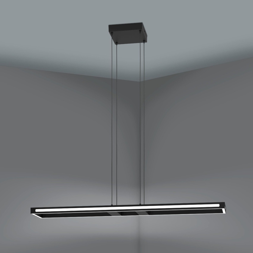 EGLO SALVILANAS-Z 99681 je chytré závěsné LED svítidlo z řady Connect-Z Smart Home, které kombinuje moderní design s pokročilými funkcemi. Obdélníkový černý kovový rám s integrovanými LED zdroji vyzařuje světlo nejen směrem dolů, ale také nepřímo po svém obvodu, čímž vytváří příjemnou atmosféru v místnosti. Díky technologii CCT můžete pomocí aplikace AwoX Home Control nebo dálkového ovladače nastavit teplotu bílé barvy od teplé po studenou (2700–6500 K), měnit intenzitu osvětlení či aktivovat praktické funkce jako časovač nebo simulaci přítomnosti. Svítidlo komunikuje přes Bluetooth a ZigBee 3.0, takže je kompatibilní s chytrými domácími systémy i hlasovými asistenty. Se svou délkou 116 cm se skvěle hodí nad jídelní nebo pracovní stůl.
