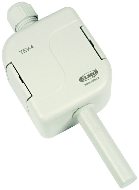 Jednoduchý termostat TEV-4 pro hlídání a regulaci teploty ve venkovních prostorech a náročných prostředích (vlhké a znečištěné, průmyslové provozy...). Venkovní provedení je krabička pro montáž na zeď, odnímatelné víčko bez šroubů. Vestavěný teplotní senzor je pevnou součástí výrobku. Dvě propojkou nastavitelné funkce: topení a chlazení. Tři nastavitelné rozsahy teploty a 3 nastavitelné hodnoty hystereze.