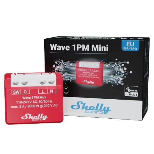 Shelly Qubino Wave 1PM Mini LR je kompaktní Z-Wave relé s měřením spotřeby, které kombinuje vysoký výkon, dlouhý dosah a minimální rozměry pro snadnou instalaci i v omezeném prostoru.